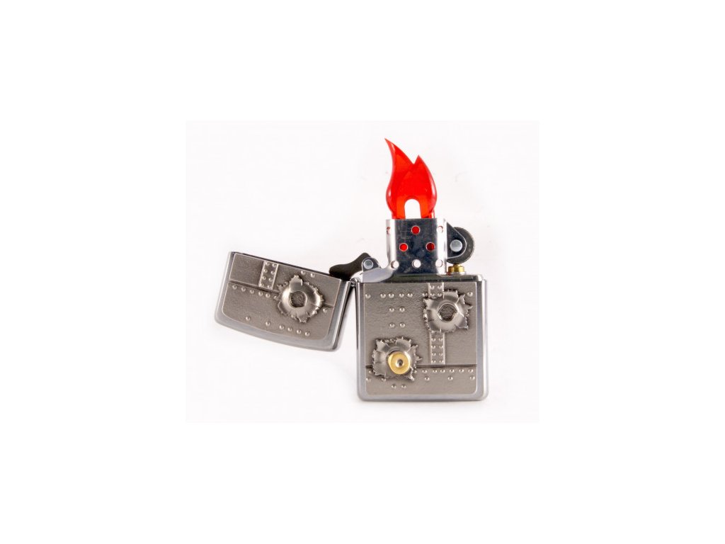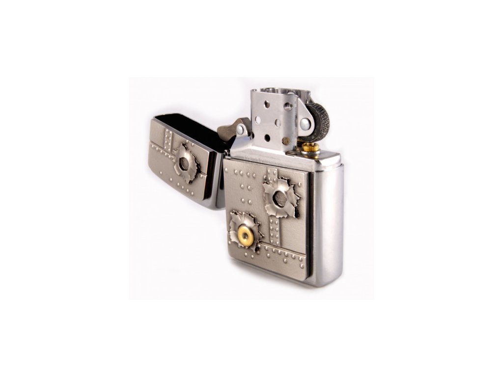 Benzínový zapalovač Zippo s výrazně plastickým emblémem na přední straně. Nejedná se o optický klam, ale motiv střel skutečně vystupuje z povrchu. Krásně propracovaný zapalovač s perfektními detaily. Zadní strana je z broušeného chromu a je vhodná pro dodatečné gravírování.