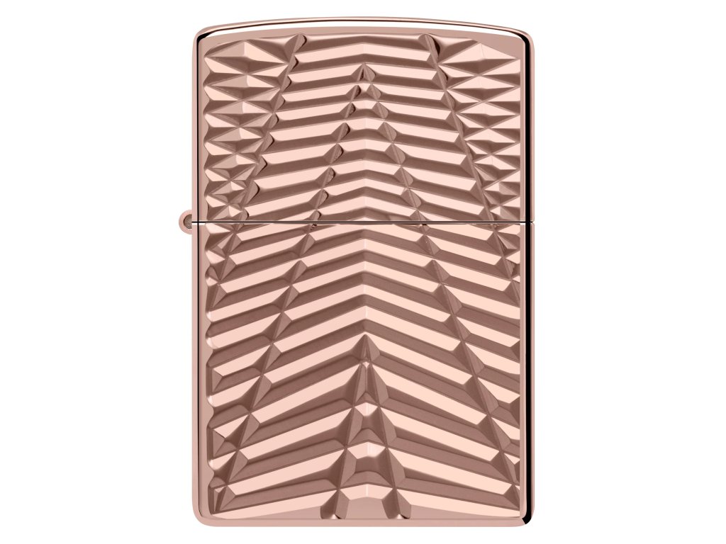 Zippo Armor® High Polish Rose Gold není obyčejný zapalovač, ale skutečný designový klenot. Lesklý povrch v barvě růžového zlata působí elegantně a zároveň odvážně. Precizní Deep Carve gravírování vytváří plastický geometrický vzor, který okamžitě zaujme na první pohled.