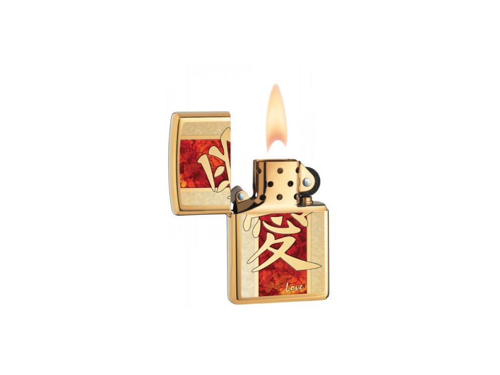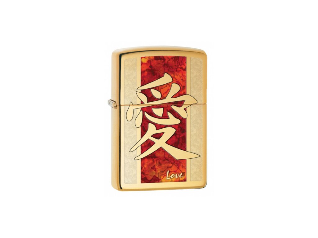 Zippo zapalovač z leštěné mosazi a zdobený  čínským znakem technikou Fusion. Jedná se o originální benzínový zapalovač Zippo s tradiční doživotní zárukou.