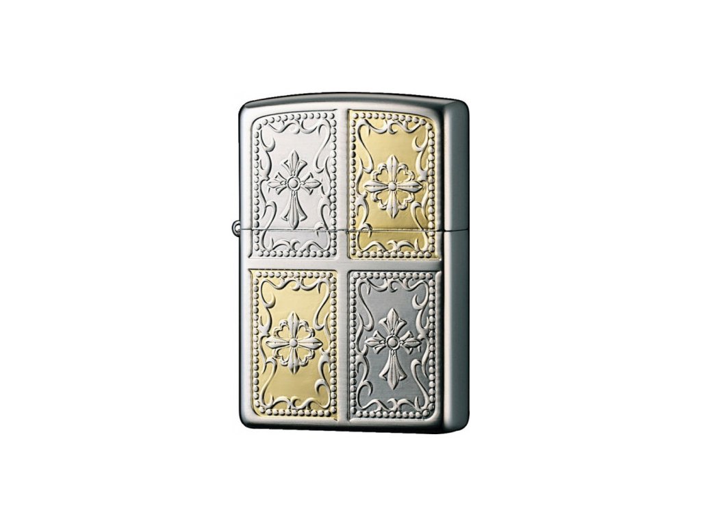 Oboustranně zdobený zapalovač Zippo z Japonské kolekce. Povrch je poplatinovaný a intarzovaný zlatem. Originál Zippo.
