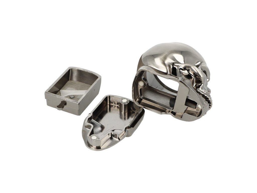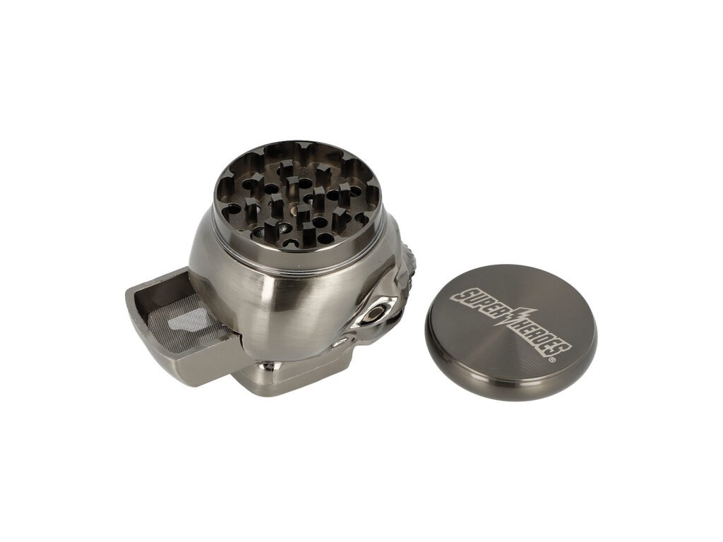 Kovový drtič tabáku a bylin Super Heroes Dark Skull zaujme nejen svým atraktivním tvarem lebky, ale i precizním zpracováním. Tento čtyřdílný drtič je vyroben z hliníku CNC technologií a disponuje závitem, sítkem a zásobníkem pro pohodlné používání.