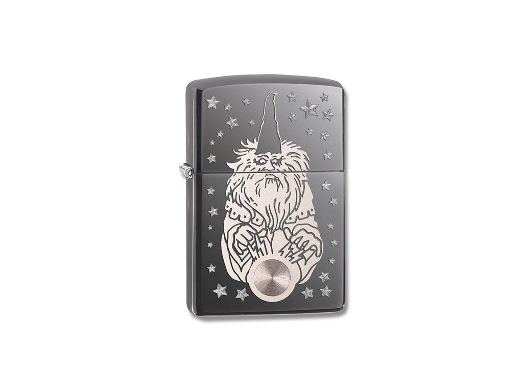 Zapalovač Zippo s fantasy motivem čaroděje. Zapalovač má leštěný povrch Black Ice a je zdoben mechanickým a laserovým gravírováním.