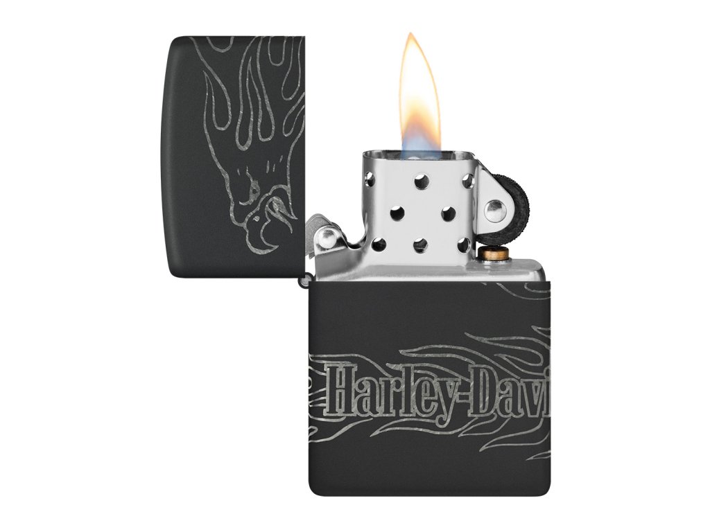 Model Zippo Harley-Davidson® 66084 odkazuje na jednu z nejikoničtějších amerických značek vůbec. Matně černý povrch Black Matte tvoří kontrastní základ pro precizní 360° laserovou gravíru, která obepíná celé tělo zapalovače.