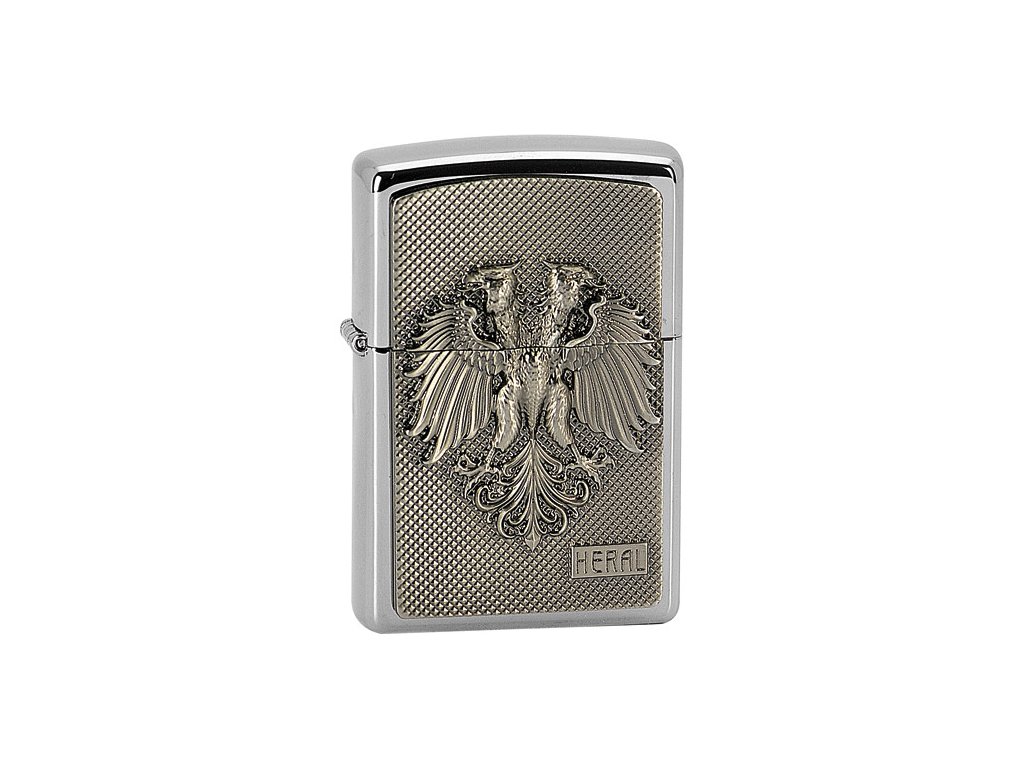 Originální benzínový zapalovač Zippo z limitované edice Heral. Zapalovač je dodáván ve výstavním rámečku.