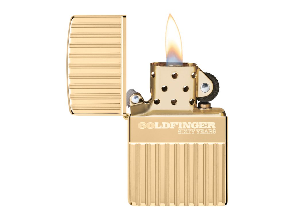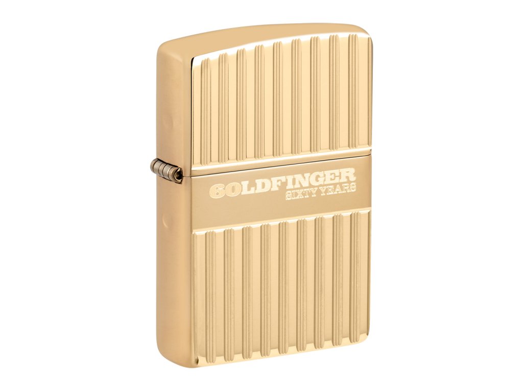 Exkluzivní Zippo Goldfinger 60. výročí s leštěnou mosazí a hlubokým frézováním. Limitováno na 5000 ks, z toho 10 pro ČR a SK. Jedinečný kousek pro sběratele a fanoušky Jamese Bonda!