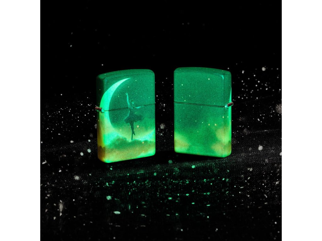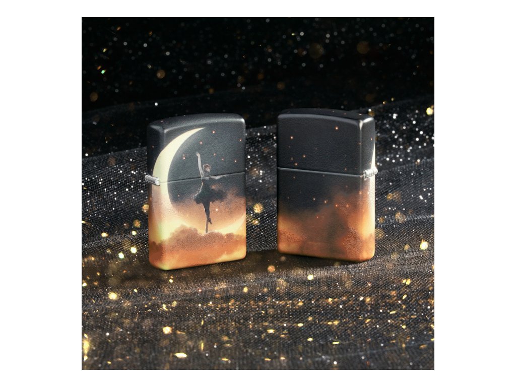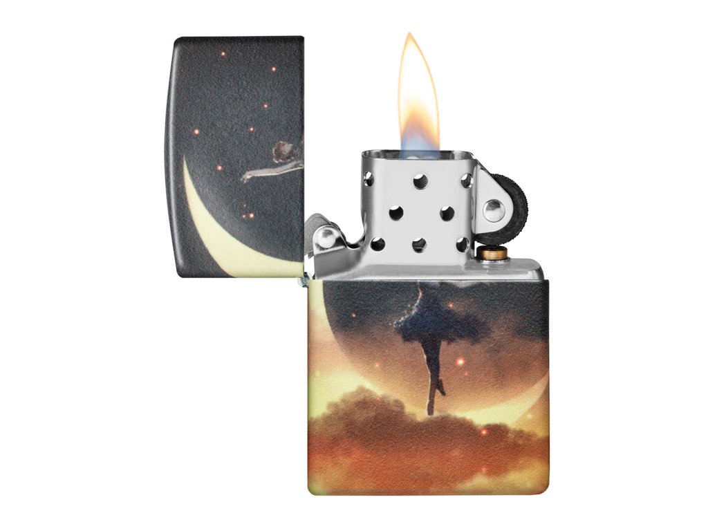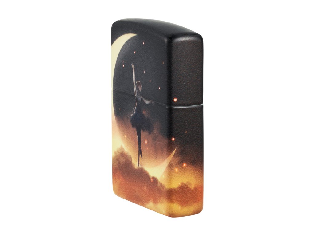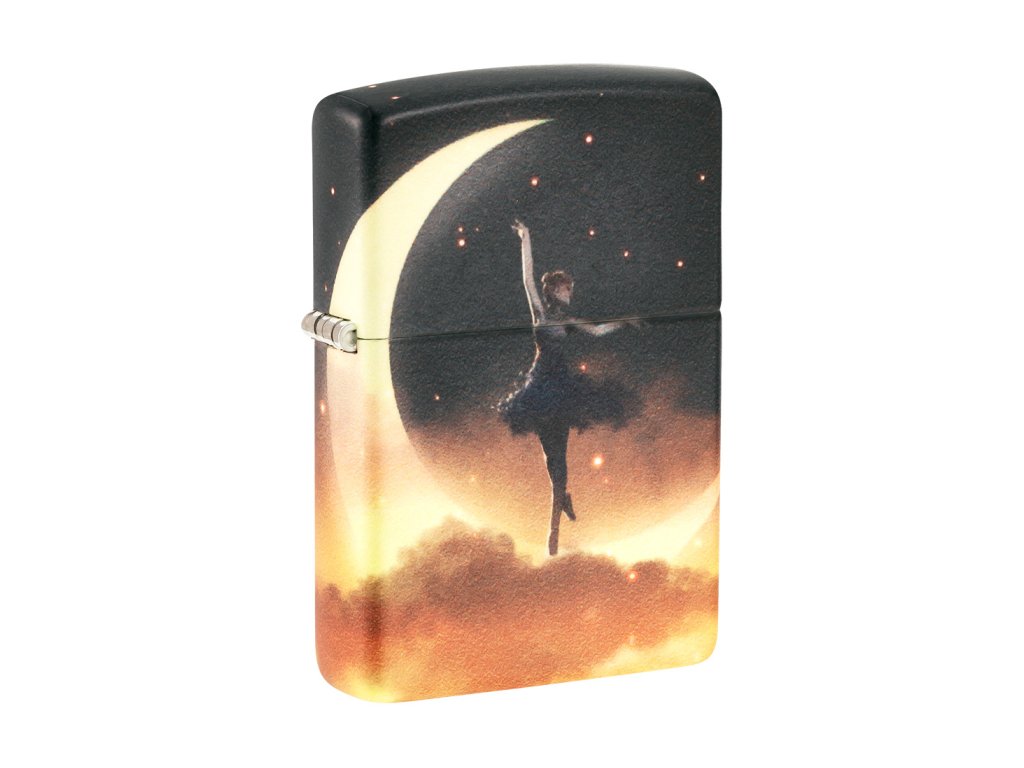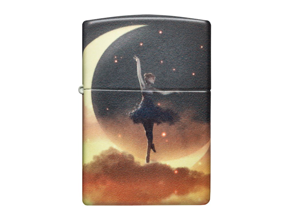 Tento Zippo zapalovač pracuje s jemným, téměř snovým výtvarným motivem. Silueta tanečnice provádějící piruetu na srpku měsíce se rozprostírá po celém těle zapalovače díky technologii 540° Color, která umožňuje plynulé navázání grafiky kolem všech stran.