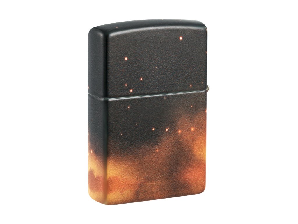 Noční obloha plná hvězd je opatřena speciální luminiscenční vrstvou Glow-in-the-Dark. Po nasvícení motiv ve tmě jemně září, čímž vzniká výrazný kontrast mezi denním a nočním vzhledem zapalovače.