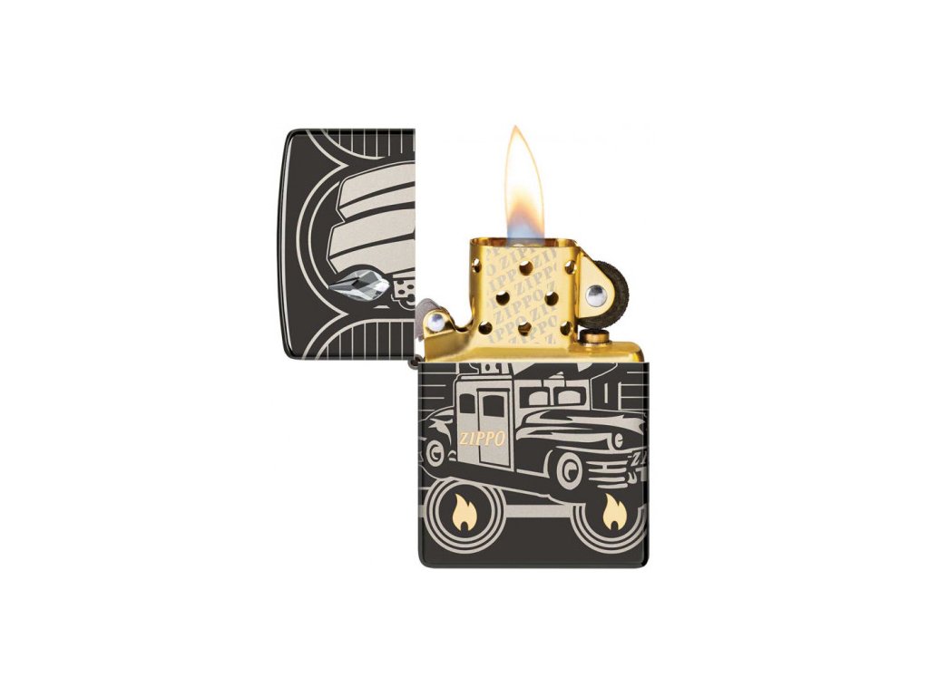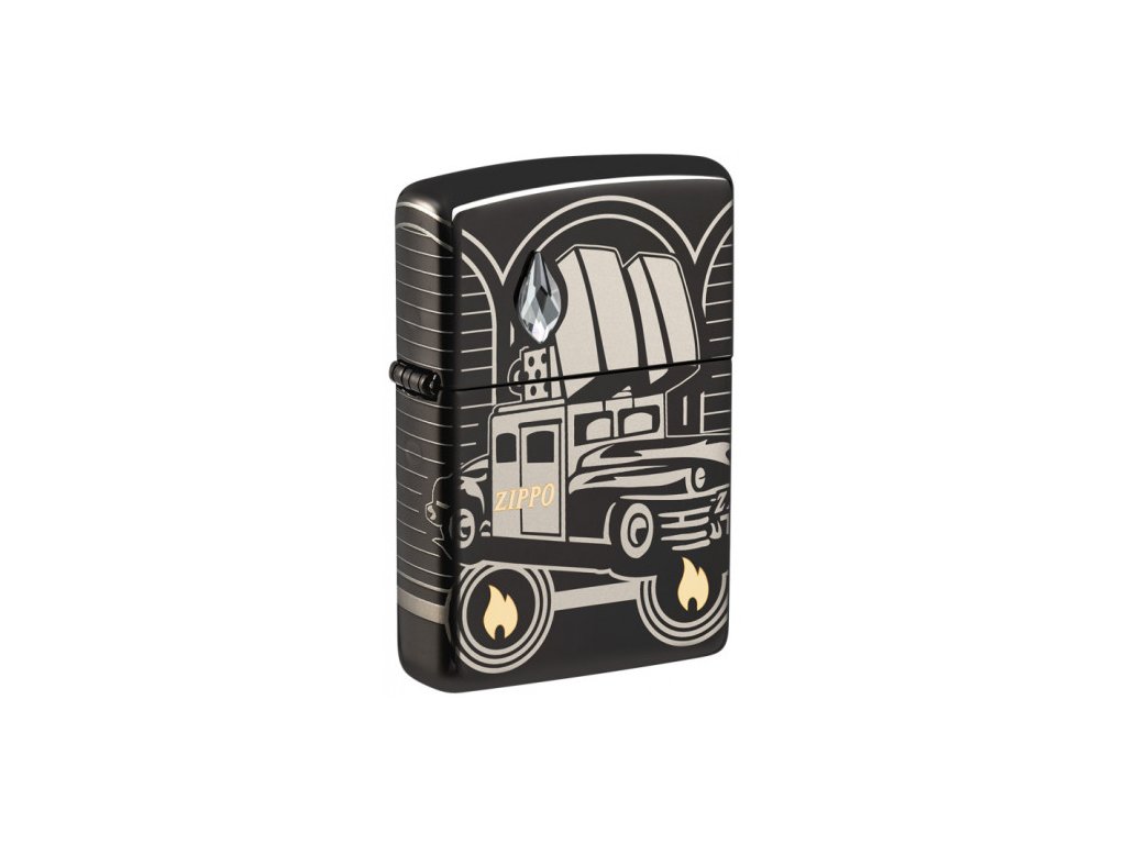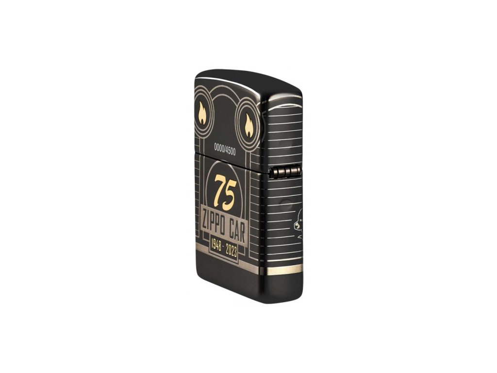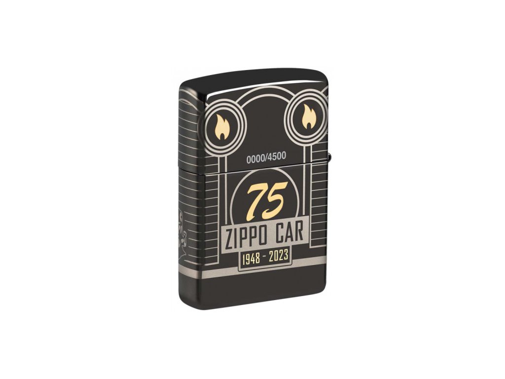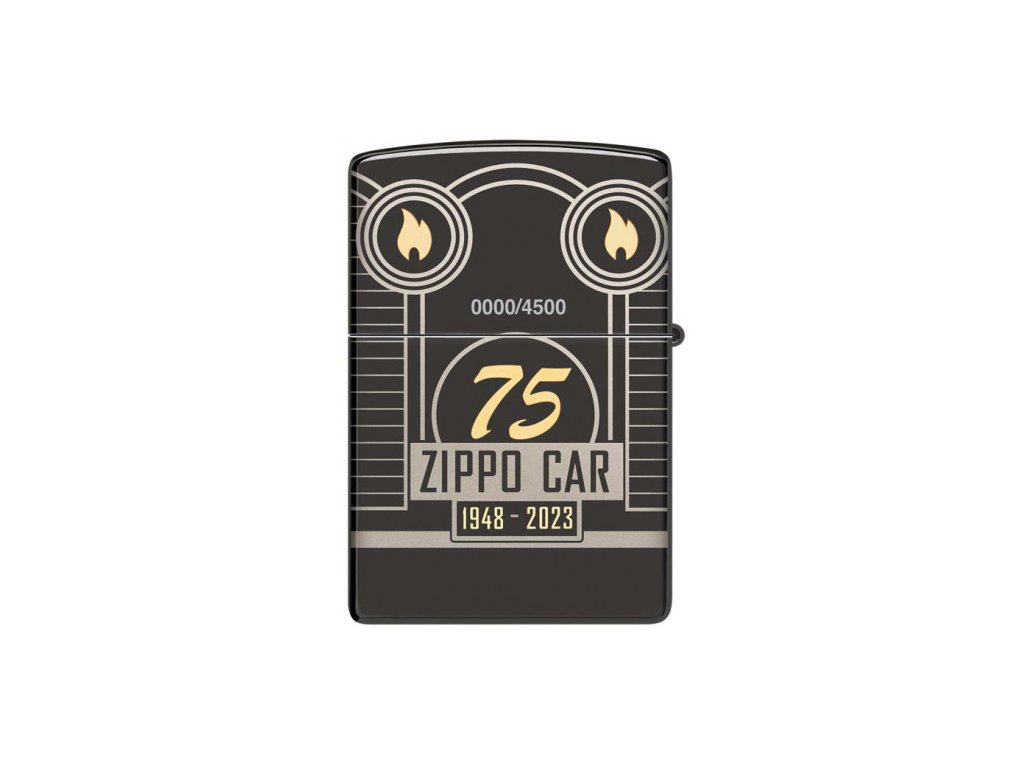 Tento zberateľský kus s povrchom Armor® High Polish Black zobrazuje ikonický voz Zippo v celej jeho kráse pomocou procesu Photo Image 360°, ktorý zdobí telo zapaľovača na všetkých stranách aj cez hrany a boky. Pomocou technológie Laser Two-Tone je plameň Zippo a ikona 75. výročia odhalená v luxusných mosadzných tónoch, zatiaľ čo komín na aute je osvetlený trblietavým krištáľom, ktorý bol vybraný špeciálne pre edíciu určenú pre Európu.
