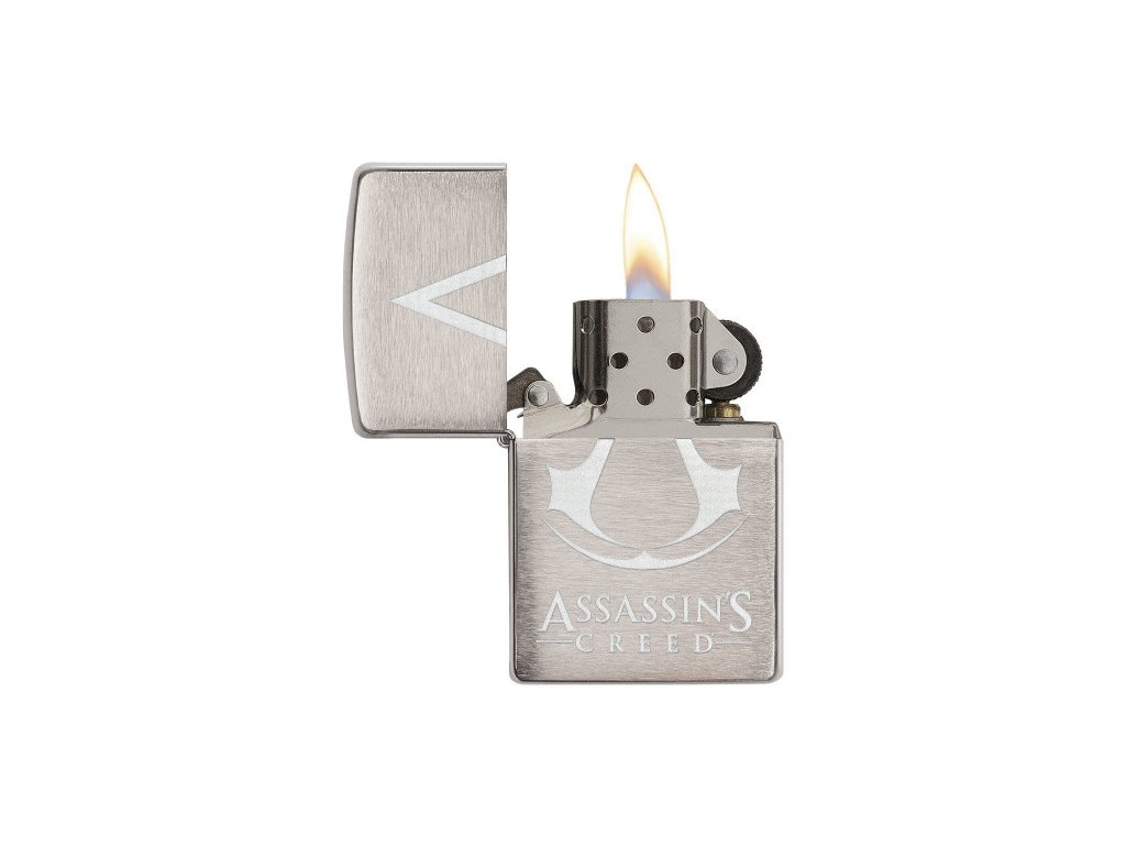 Zippo s motívom obľúbenej hernej série Assassin's Creed. Dej tejto historicky akčnej hry sa odohráva prevažne v Spojených štátoch amerických a to v rozličných časových obdobiach. Hlavnú líniu príbehu tvorí nekonečný boj medzi asasínmi a templármi a príbeh sprevádza krédo asasínov: "Nothing is true, everything is permitted" - "Nič nie je pravda, všetko je dovolené"