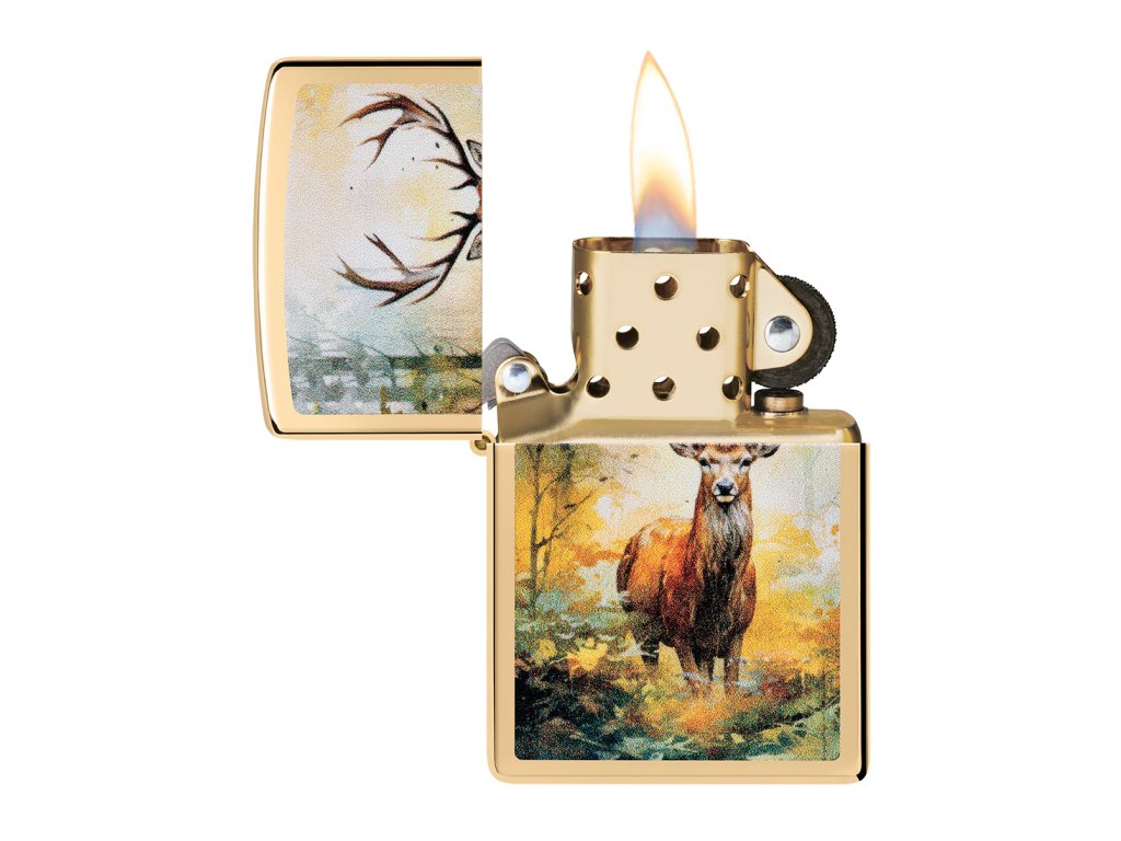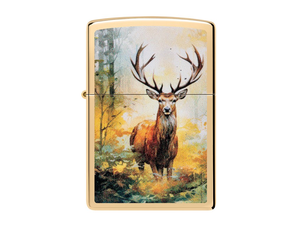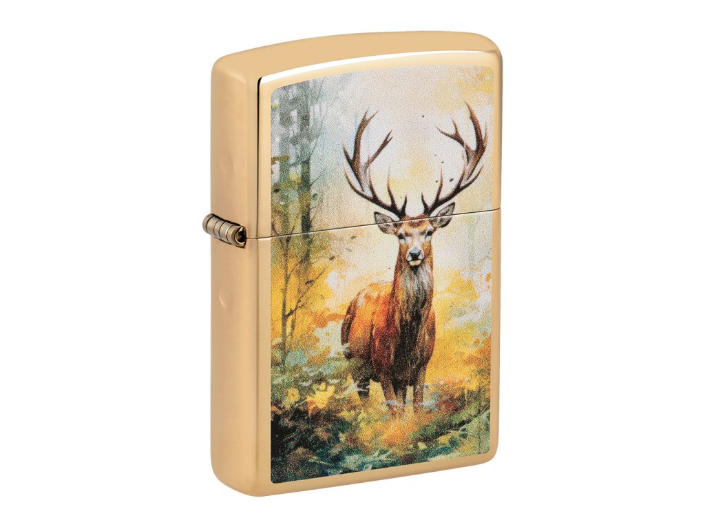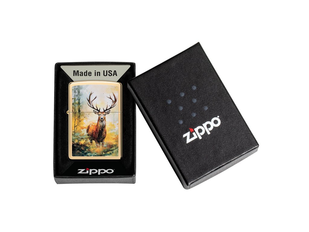 Elegancia prírody na dosah ruky! Tento klasický Zippo zapaľovač s povrchom z leštenej mosadze zachytáva majestátneho jeleňa vystupujúceho z tajomného lesného oparu. Detailný motív je precízne prevedený digitálnou farebnou tlačou, ktorý dokonale vyniká na lesklom kovovom podklade. Rovnako ako všetky originálne Zippo zapaľovače je aj tento vetruvzdorný, plniteľný a opatrený ikonickým "kliknutím". Dodáva sa v elegantnej darčekovej krabičke.