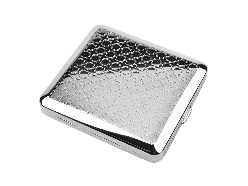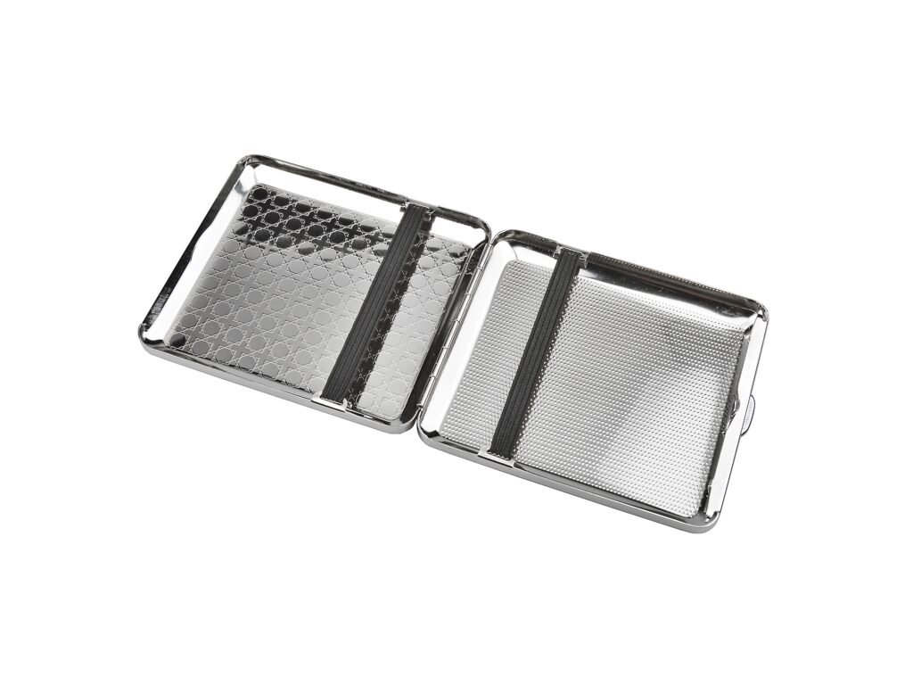 Elegantná kovová tabatierka pre 18 cigariet veľkosti King Size, ktorá kombinuje sofistikovaný dizajn s praktickým využitím. Prednú stranu zdobí detailný gravírovaný vzor, zatiaľ čo lesklý chrómový povrch dodáva luxusný vzhľad. Zadná strana má jemne textúrovaný povrch pre lepší úchop. Vnútri tabatierky sú cigarety bezpečne upevnené pružnou gumičkou, čo zaisťuje ich ochranu a ľahkú dostupnosť. Štýlový doplnok pre každého fajčiara, ktorý ocení kvalitu a nadčasový dizajn.