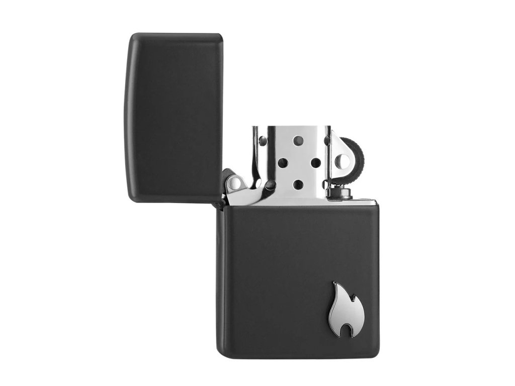 Pridajte do svojej zbierky nádych decentného luxusu s týmto klasickým zapaľovačom v matnej čiernej farbe. Kovový emblém pokrytý lesklým niklom v tvare Zippo plameňa dodáva elegantný vzhľad.