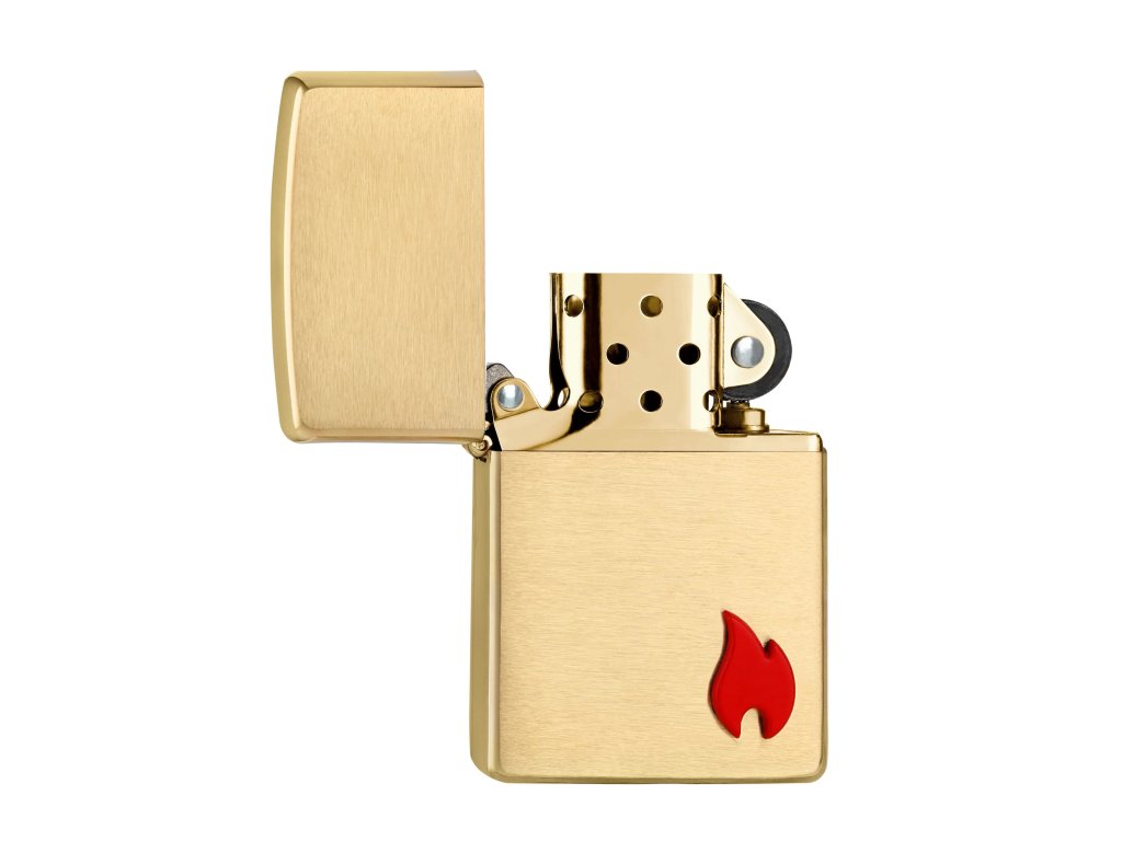 Elegantný zapaľovač v kartáčovanej mosadze s červeno lakovaným emblémom plameňa Zippo dodá vašej zbierke decentný luxus. Výrazný kontrast klasického dizajnu a červeného emblému.
