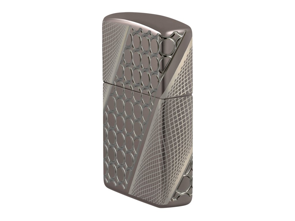 Luxusný Zippo Armor® Black Ice® s hlbokým frézovaným zdobením 360° MultiCut a celoplošnou kovovou tlačou Photo Image 360°. Dodávaný v darčekovej krabičke.