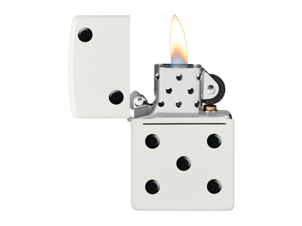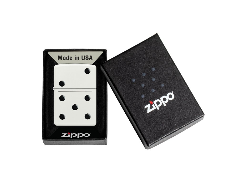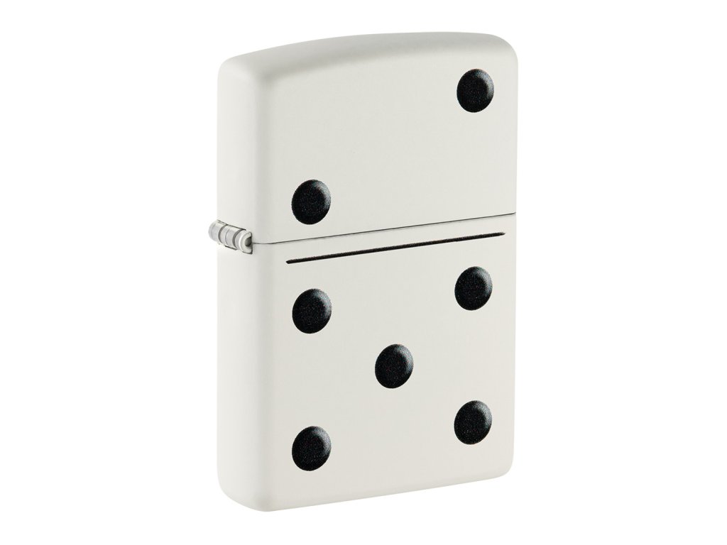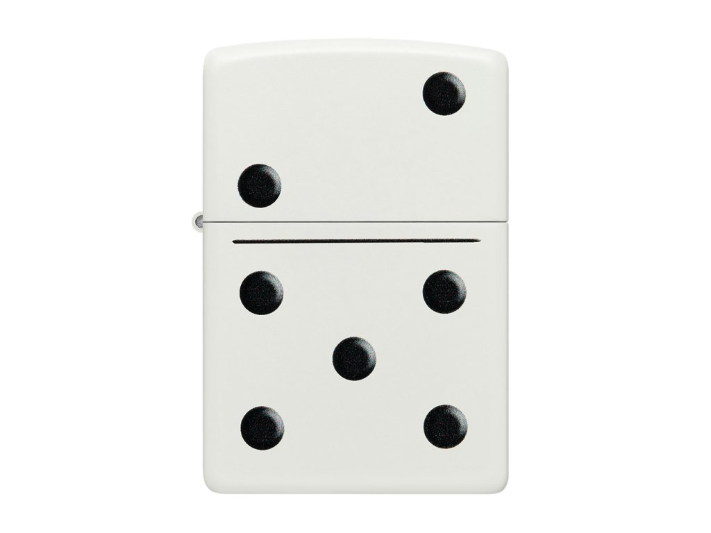 Tento model Zippo spracúva motív klasickej hry domino v čistej a prehľadnej grafickej podobe. Kostky domina sú aplikované technológiou Color Image, ktorá umožňuje presné detaily a konzistentné farebné podanie. Matný povrch White Matte eliminuje odlesky a zvýrazňuje samotný motív.