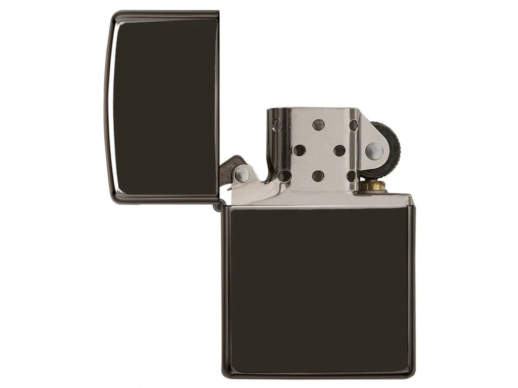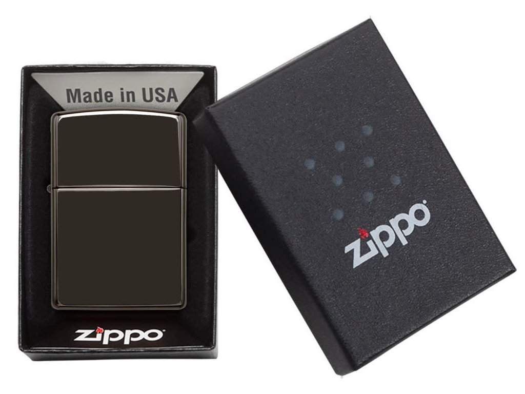 Vetruodolný benzínový zapaľovač Zippo s čiernym lešteným povrchom Ebony / High Polish Black. Zapaľovač je dodávaný v darčekovej krabičke a s doživotnou zárukou.