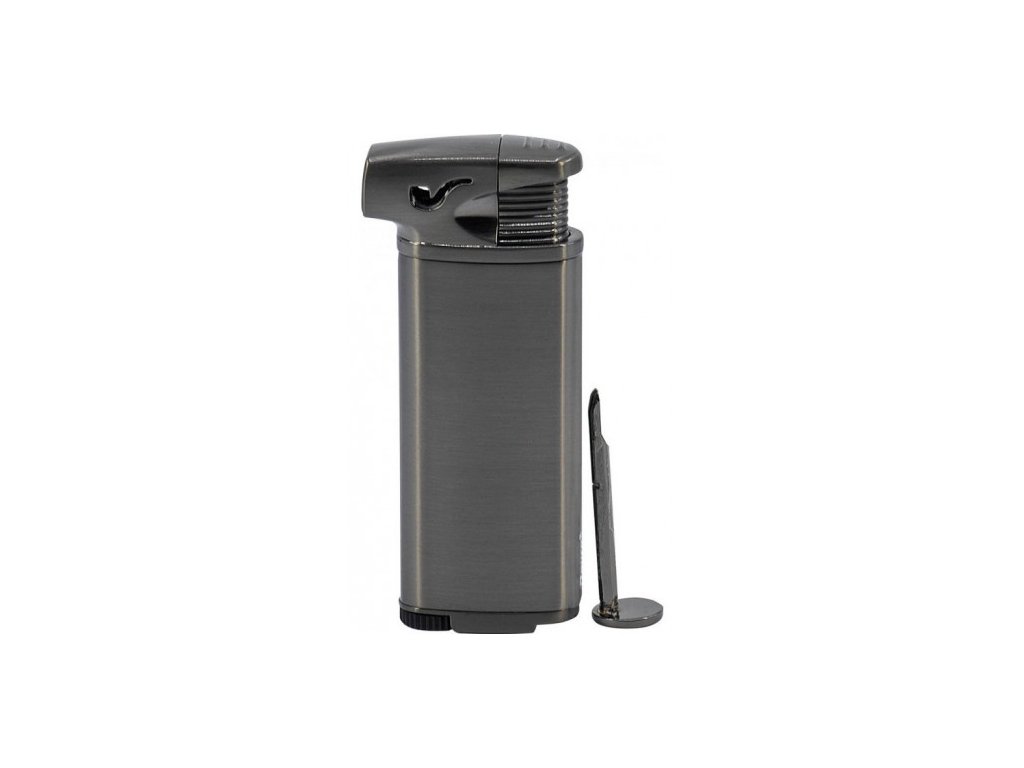 Zapaľovač s bočným plameňom pre šetrné zapaľovanie fajky a s plynulou reguláciou dĺžky plameňa. Zapaľovač je opakovane plniteľný a na plnenie môžete použiť kvalitný plyn Zippo. Na spodnej hrane nájdete aj výsuvné dusadlo.
