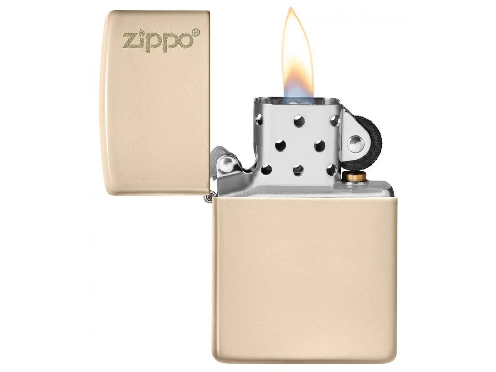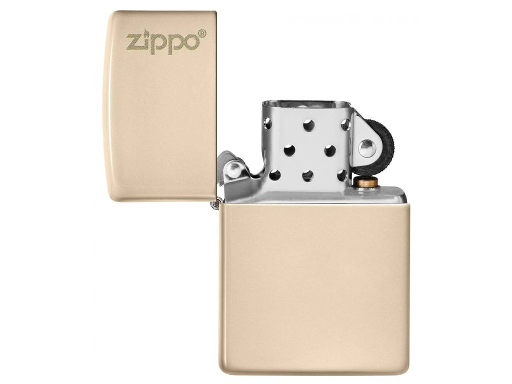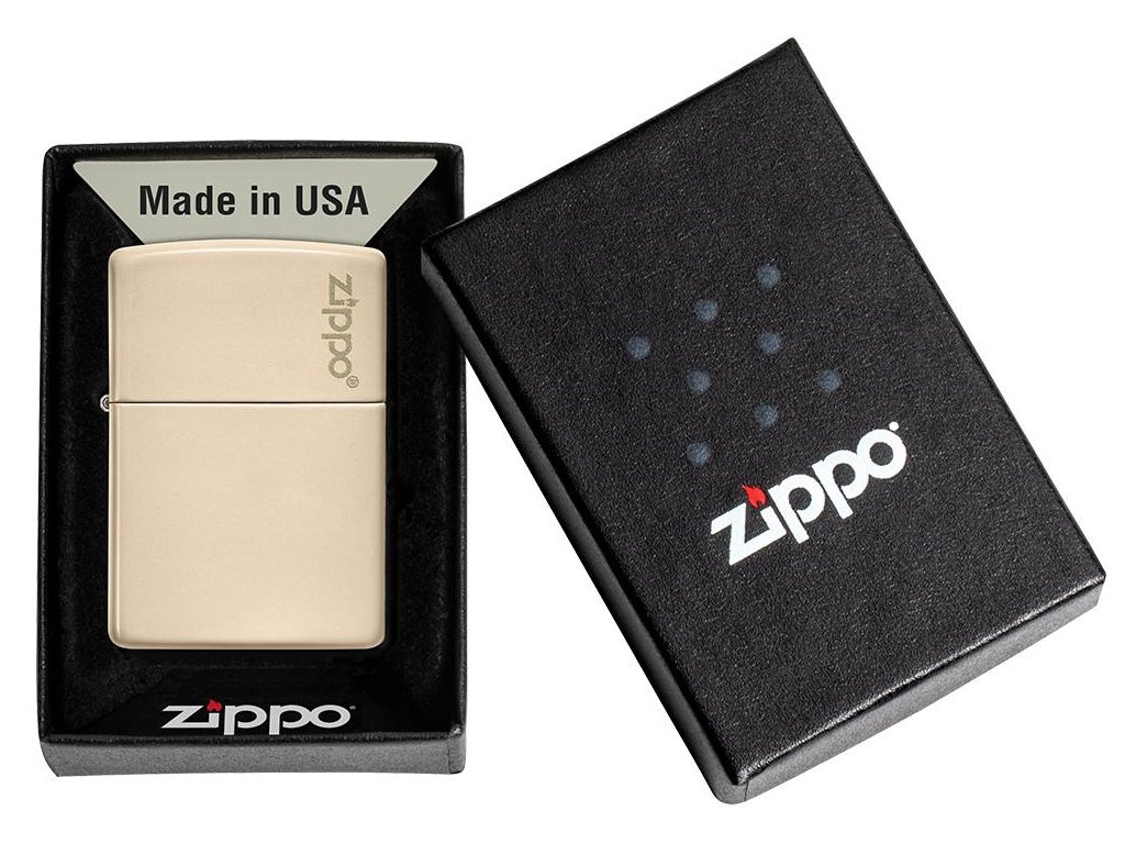 Benzínový Zippo zapaľovač s povrchom Flat Sand a s logom Zippo na viečku. Zapaľovač je krytý unikátnou doživotnou zárukou, kedy je v prípade závady opravený alebo vymenený.