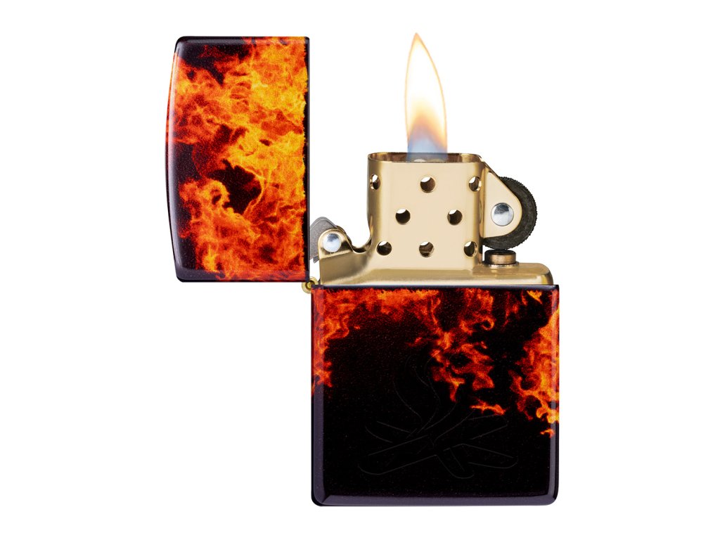 Tento exkluzívny Zippo zapaľovač, predstavený na Founder’s Day 2024, spája inovatívne technológie Lustre a 540 Fusion, ktoré vytvárajú luxusnú hĺbku a žiarivé farby v celoplošnom prevedení. Dynamický motív plameňov pokrýva každú stranu zapaľovača, pričom trblietavé kovové tóny povrchu Tumbled Brass podčiarkujú jeho jedinečný vzhľad. Jemne vyleptané táborové ohnisko dodáva celému dizajnu autentický detail.