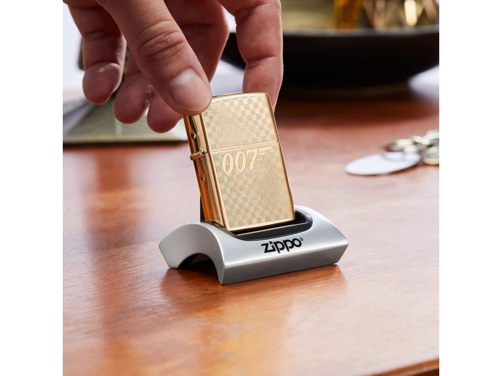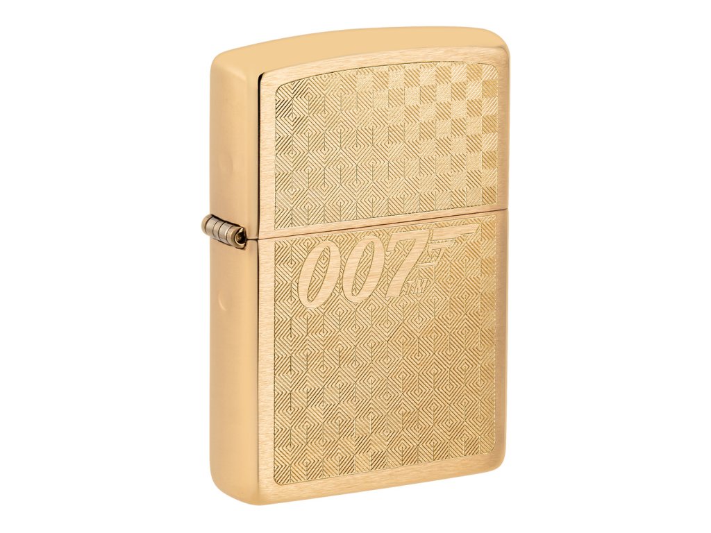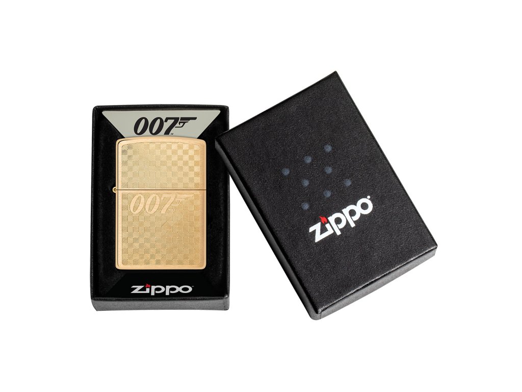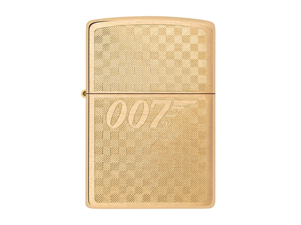 Zippo z kefovanej mosadze s rytým logom James Bond 007™ a šachovnicovým vzorom. Odolné voči vetru, ikonické "klik", doživotná záruka. Dodávané v elegantnej darčekovej krabičke.