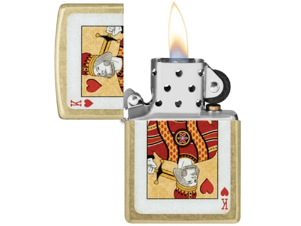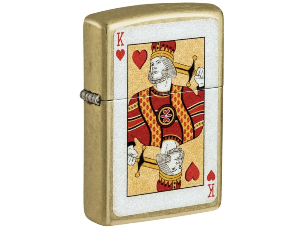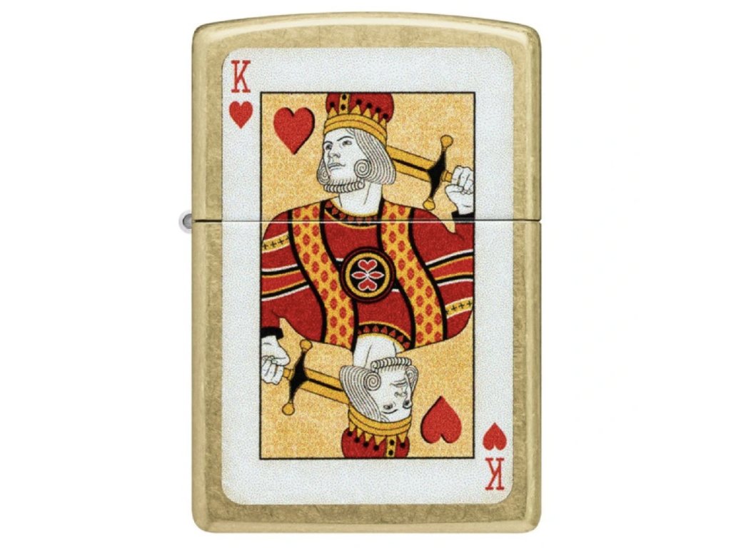 Elegantný Zippo zapaľovač s kartovým motívom srdcového kráľa. Povrch Brass Street dodáva zapaľovaču jedinečný vzhľad s mosadznou patinou. Spoľahlivý, odolný a tradične doplnený doživotnou zárukou od Zippo.