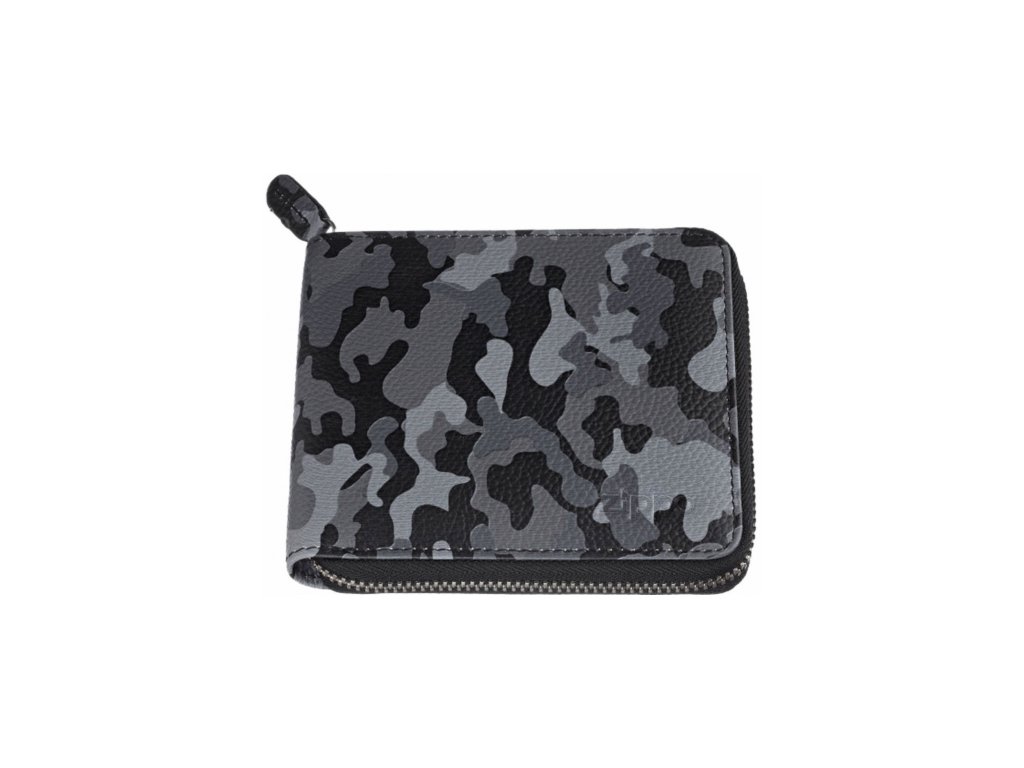 Kožená peňaženka Zippo so zapínaním na zips, vyrobená z pravej kože a s maskovacím vzorom. Peňaženka je dodávaná v elegantnej darčekovej krabičke.
