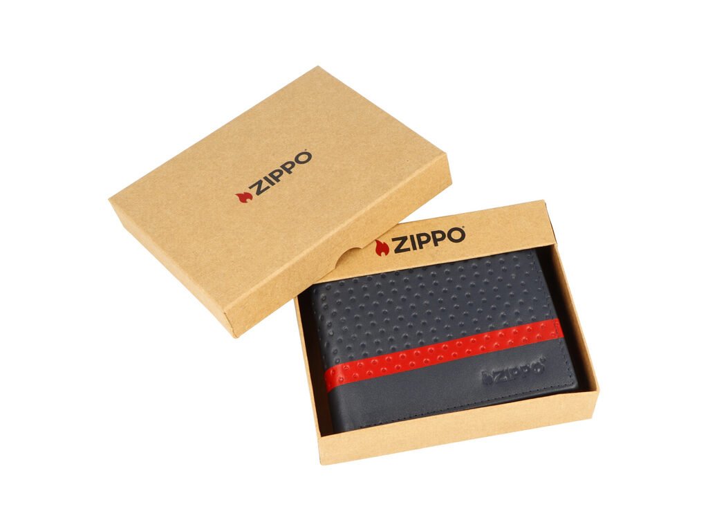 Vnútri nájdete 2 priehradky na bankovky, 9 slotov na karty, vrecko na mince a 2 zásuvné vrecká. Integrovaná RFID ochrana navyše bráni zneužitiu bezkontaktných kariet. Decentné logo Zippo podčiarkuje svieži, športový charakter.