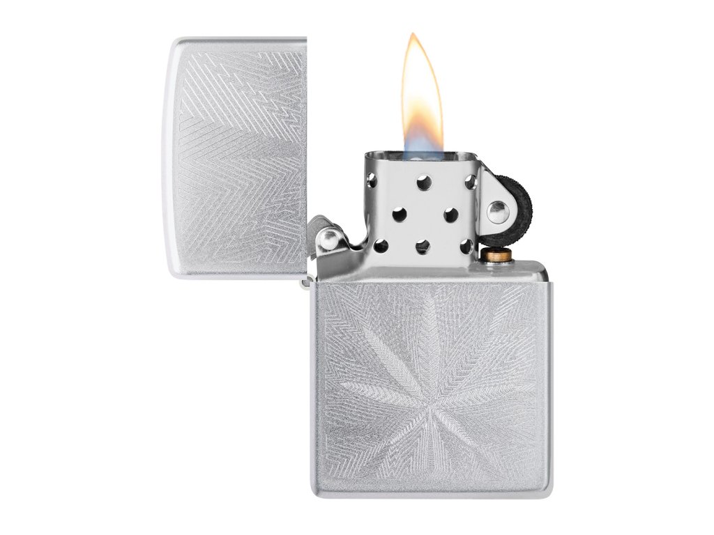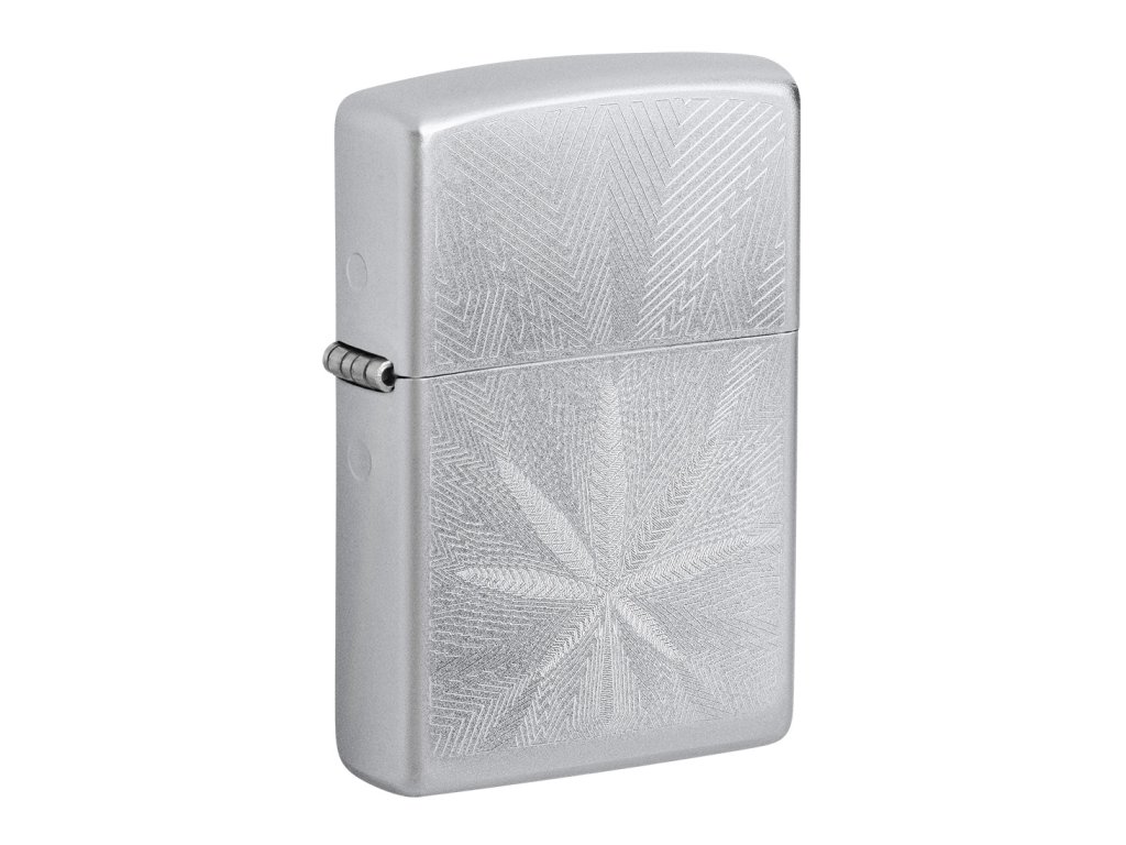 Klasický Zippo zapaľovač so saténovo chrómovým povrchom zdobí precízne rytý motív konopného listu s jemnými detailmi. Elegantný a nadčasový dizajn poteší každého zberateľa. Dodávané v darčekovej krabičke.