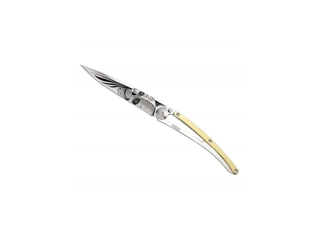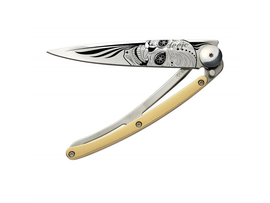 Luxusný vreckový nôž Deejo GOLD Tattoo 27g 23kt yellow gold Latino Skull
