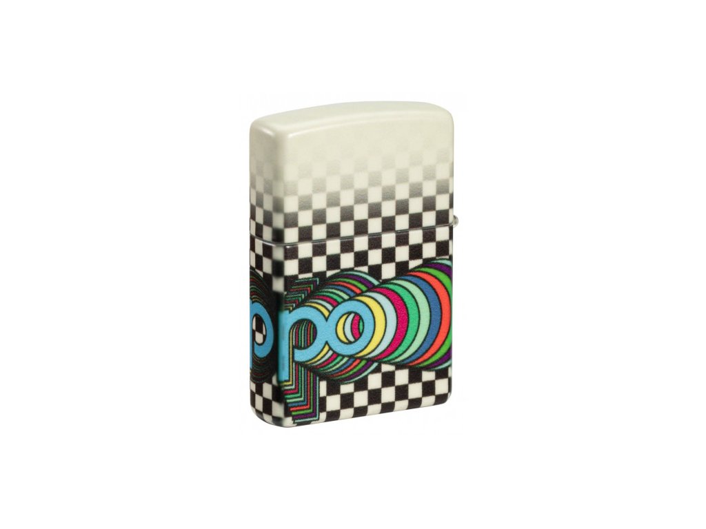 Na tomto fascinujúcom zapaľovači 540 Color žiari pestrofarebné logo Zippo na ostrom geometrickom pozadí. Celoplošný dizajn ožije po zotmení vďaka našej exkluzívnej povrchovej úprave Glow in the Dark (luminiscenčná svietiaca farba). Dodáva sa v darčekovej krabičke. Pre dosiahnutie optimálneho výkonu naplňte
