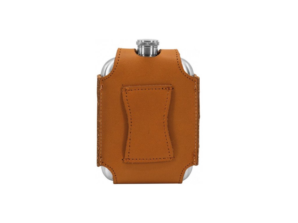 - Kožené puzdro aj s ploskačkou je možné pripevniť za opasok