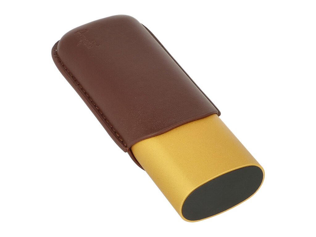 Puzdro na 2 cigary Angelo Alu, hnedé/zlaté, 15–18 cm