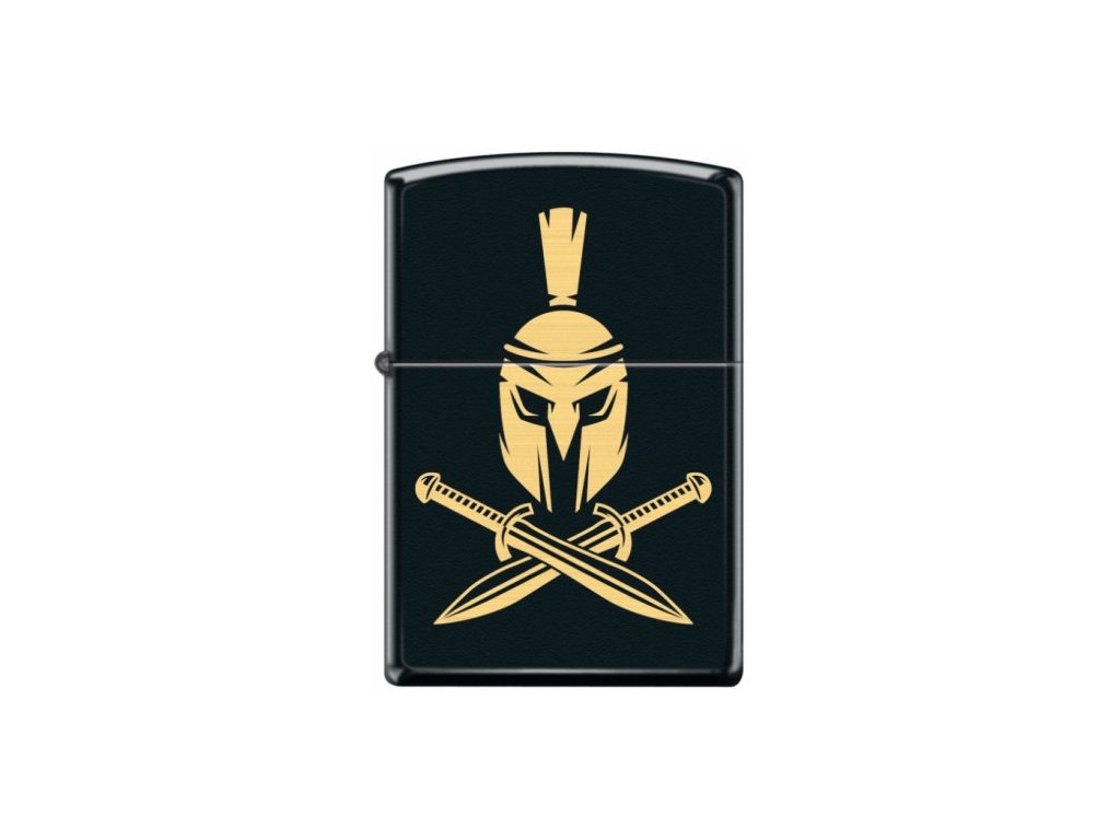 - Spôsob zdobenia: Laserové gravírovanie na prednej strane - obrázok je do čierneho povrchu vygravírovaný laserom, tým je odkrytý zlatý kovový povrch schránky Zippo zapaľovača