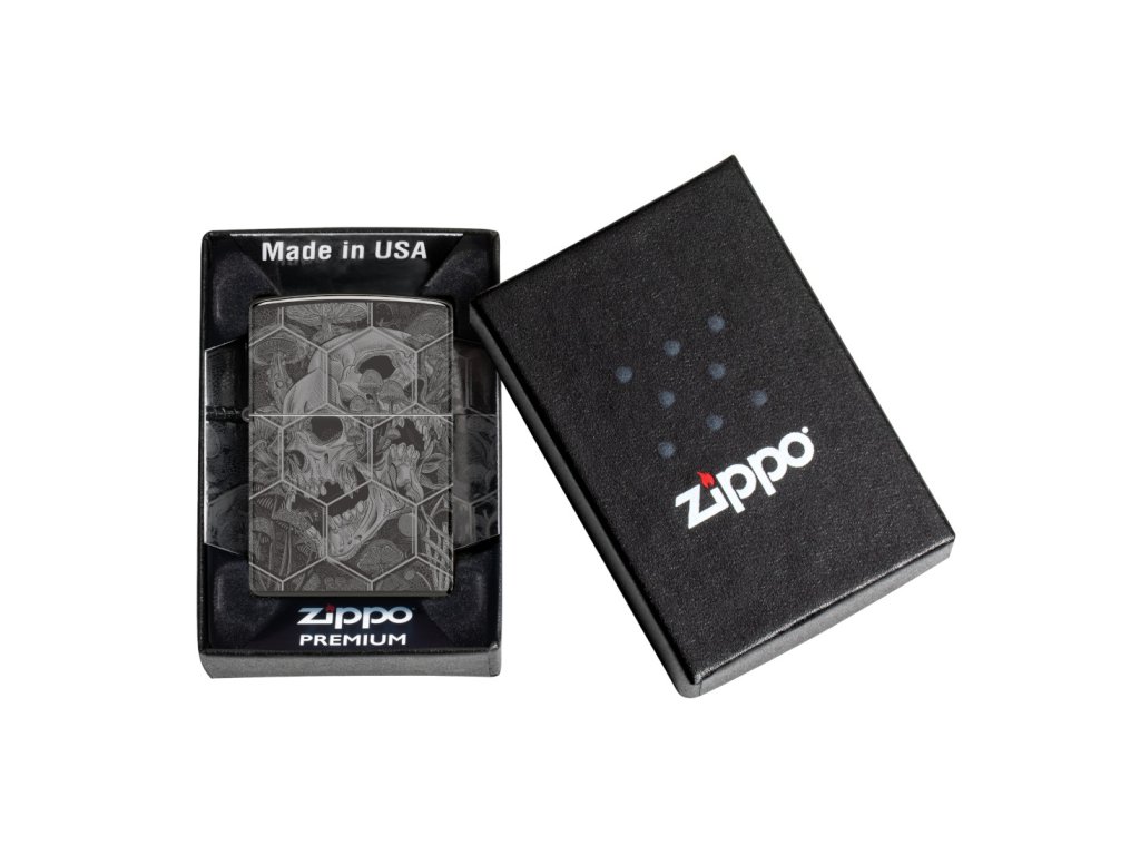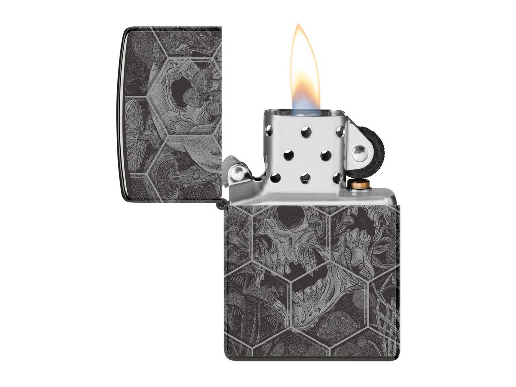 Tento zapaľovač z kolekcie Gothic oslní svojim extravagantným dizajnom. Leštený povrch High Polish Black dodáva luxusný vzhľad, zatiaľ čo 360° Photo Image technika obopína celé telo zapaľovača psychedelickým motívom lebky, halucinogénnych húb a geometrických tvarov pripomínajúcich včelie plásty. Ikonická kvalita Zippo, vetruvzdorná konštrukcia a doživotná záruka robia z tohto modelu nielen štýlový doplnok, ale aj spoľahlivého spoločníka.