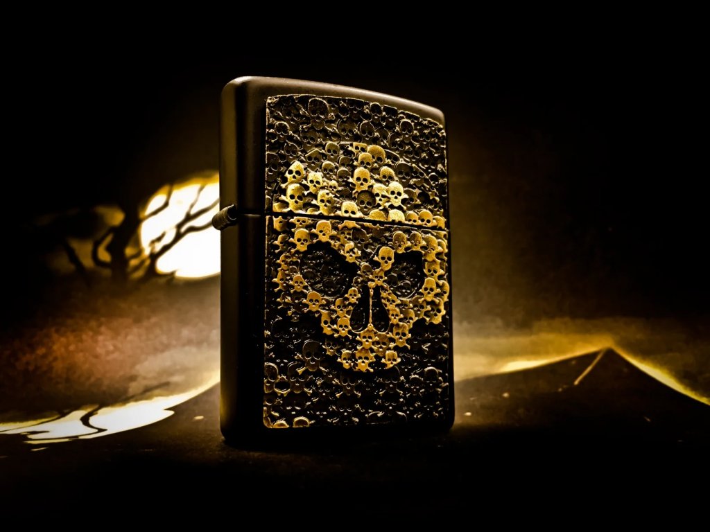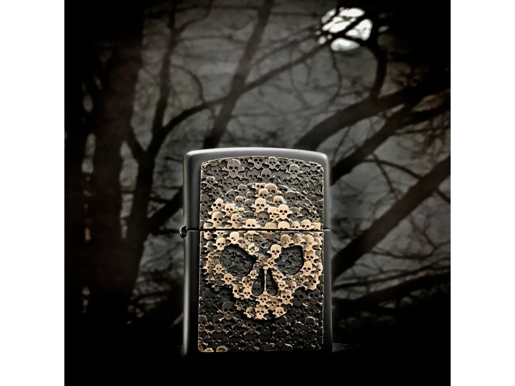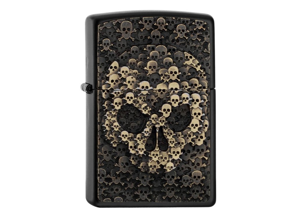 Zippo Black Matte sa môže pochváliť unikátnym 3D kovovým emblémom v podobe Skull, ktorý je zložený z mnohých menších lebiek. Plastický motív vystupuje z povrchu zapaľovača a vytvára silný vizuálny efekt, vďaka ktorému je každý pohľad na zapaľovač nezabudnuteľný. Tento dizajn spája odvážnosť s eleganciou a je ideálny pre zberateľov a fanúšikov výrazných doplnkov.