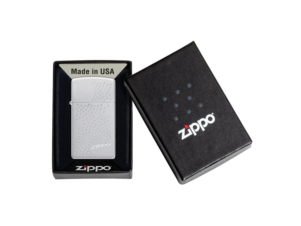 Elegantný Zippo Slim® Satin Chrome s jemne gravírovaným logom Zippo uprostred sústredných kruhov, ktoré evokujú pokoj a harmóniu. Precízne mechanické rytie dodáva zapaľovaču sofistikovaný vzhľad. Dodávané v darčekovej krabičke.