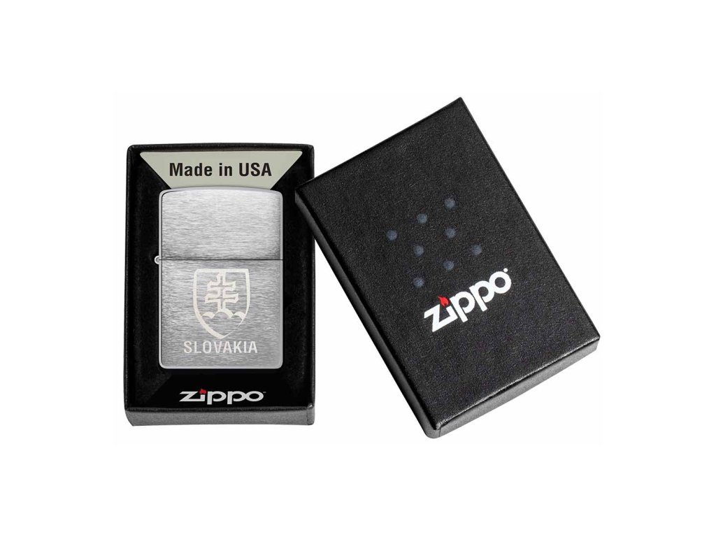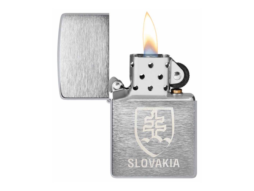 Originálny Zippo zapaľovač s motívom slovenského štátneho znaku, celokovová konštrukcia, brúsený chróm, laserové zdobenie, doživotná záruka.