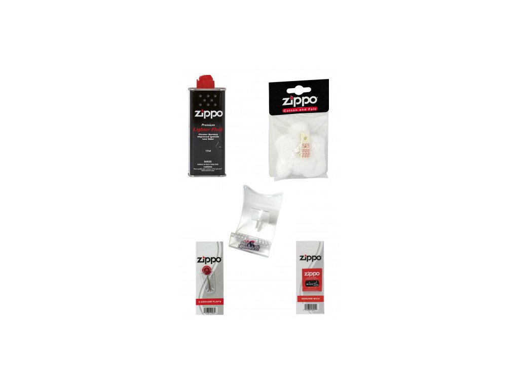 Všetko potrebné pre Váš benzínový zapaľovač Zippo. Kompletná výhodná sada príslušenstva Zippo + stojanček na Zippo zapaľovač.