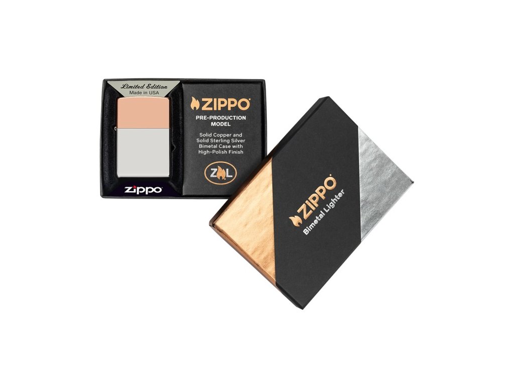Po úspechu programu Solid Copper Case spoločnosť Zippo s potešením prvýkrát predstavuje zapaľovač Bimetal Case. Tento úžasný exponát, vyrobený z masívnej medi a masívneho striebra a vyleštený do vysokého lesku, je druhým hybridným puzdrom v histórii spoločnosti Zippo - prvým bola ultra limitovaná skúšobná séria v roku 2007.