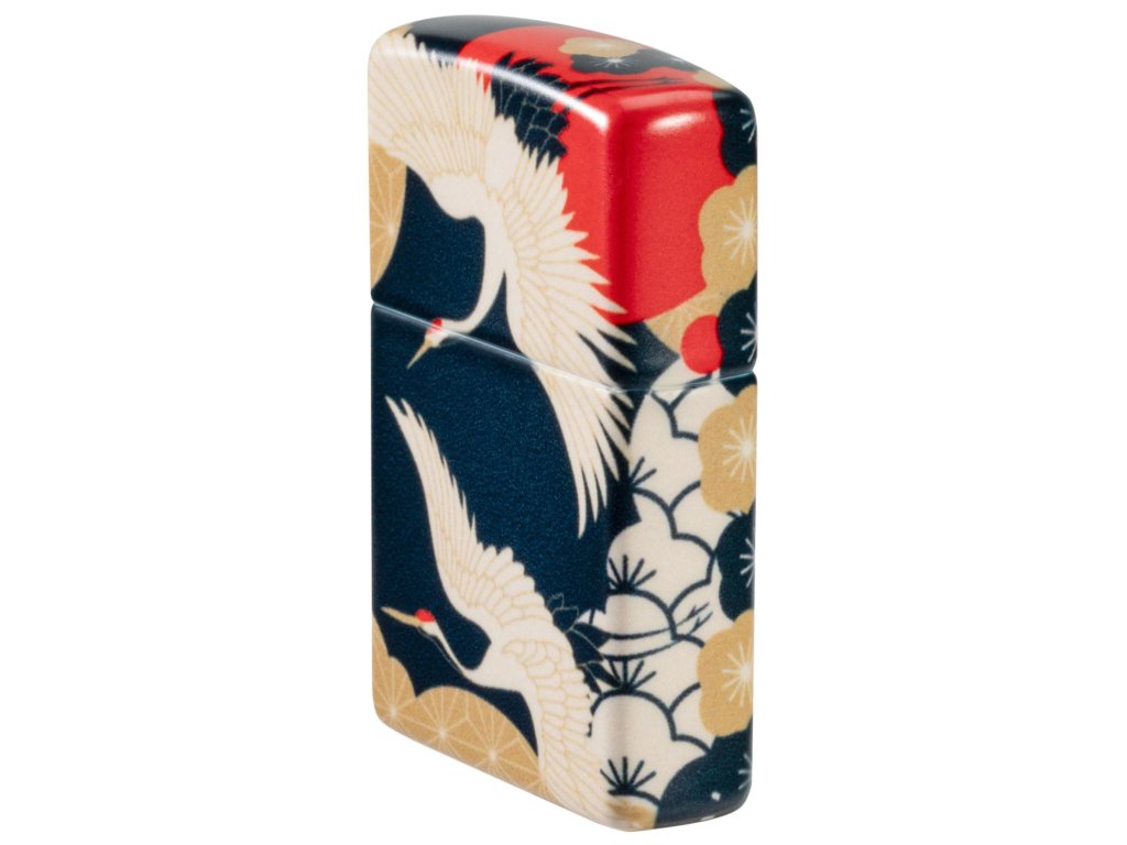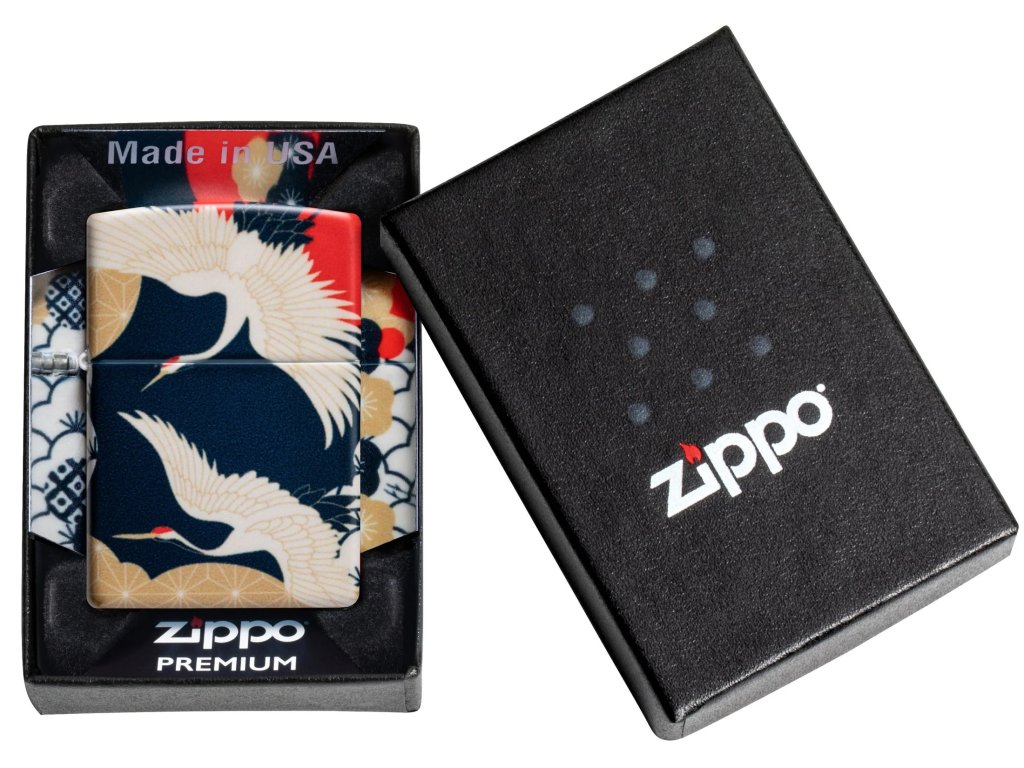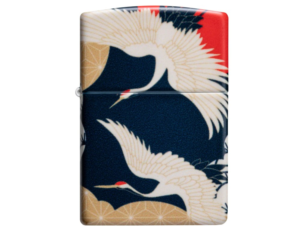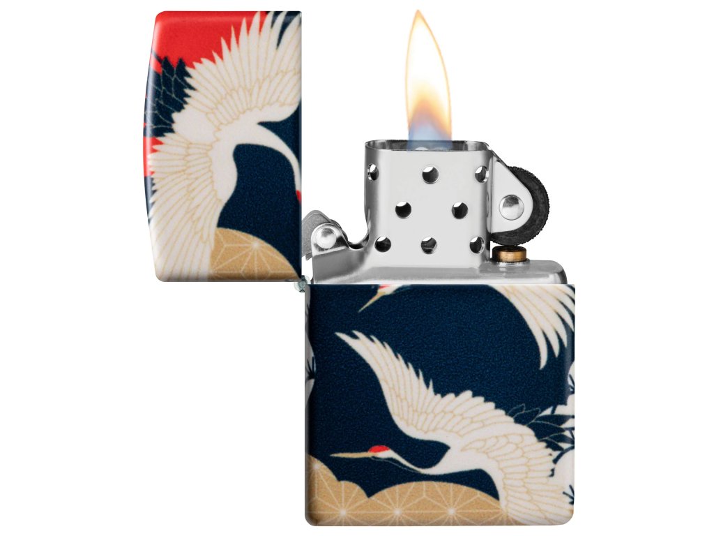 legantný Zippo Crane Design kombinuje tradičné čínske umenie s modernou technológiou. Na celom zapaľovači sa vznášajú žeriavy nad abstraktnou krajinou, motiv je spracovaný metódou 540° Color, ktorá zabezpečuje rovnomerné a detailné pokrytie po všetkých stranách.