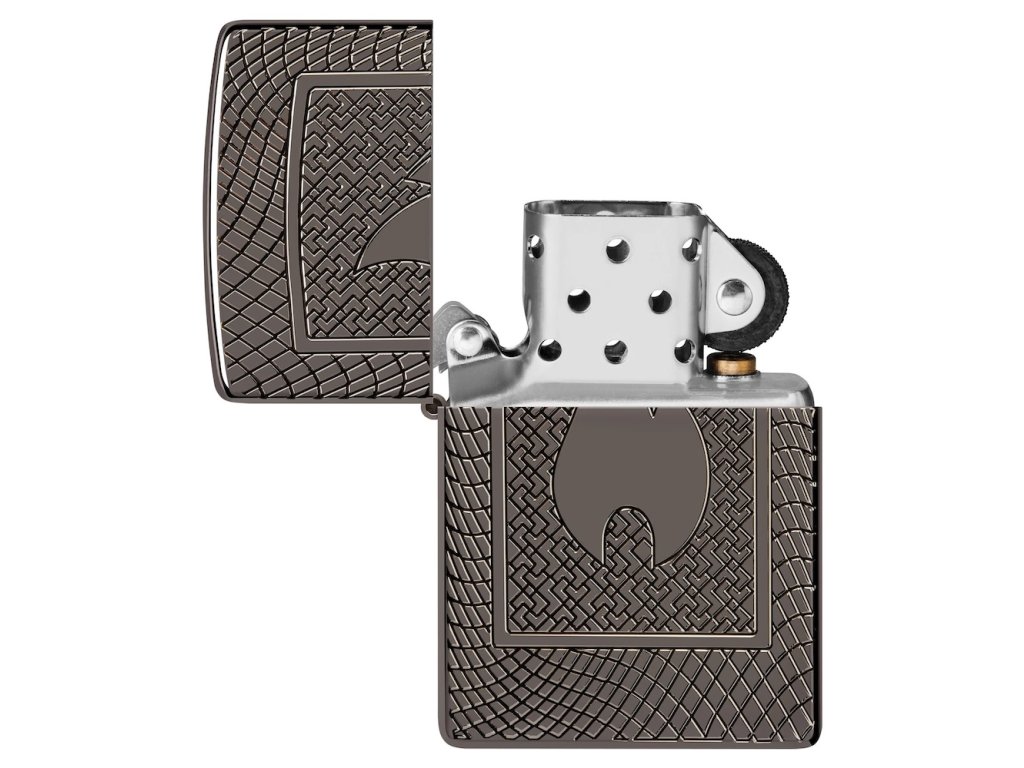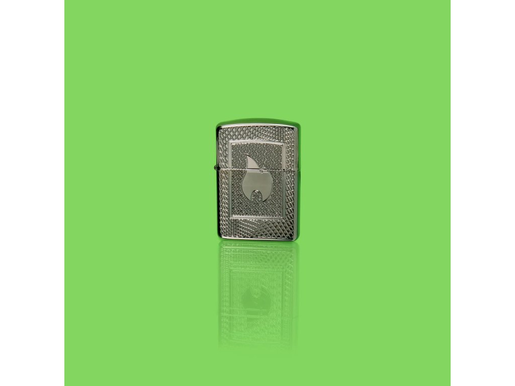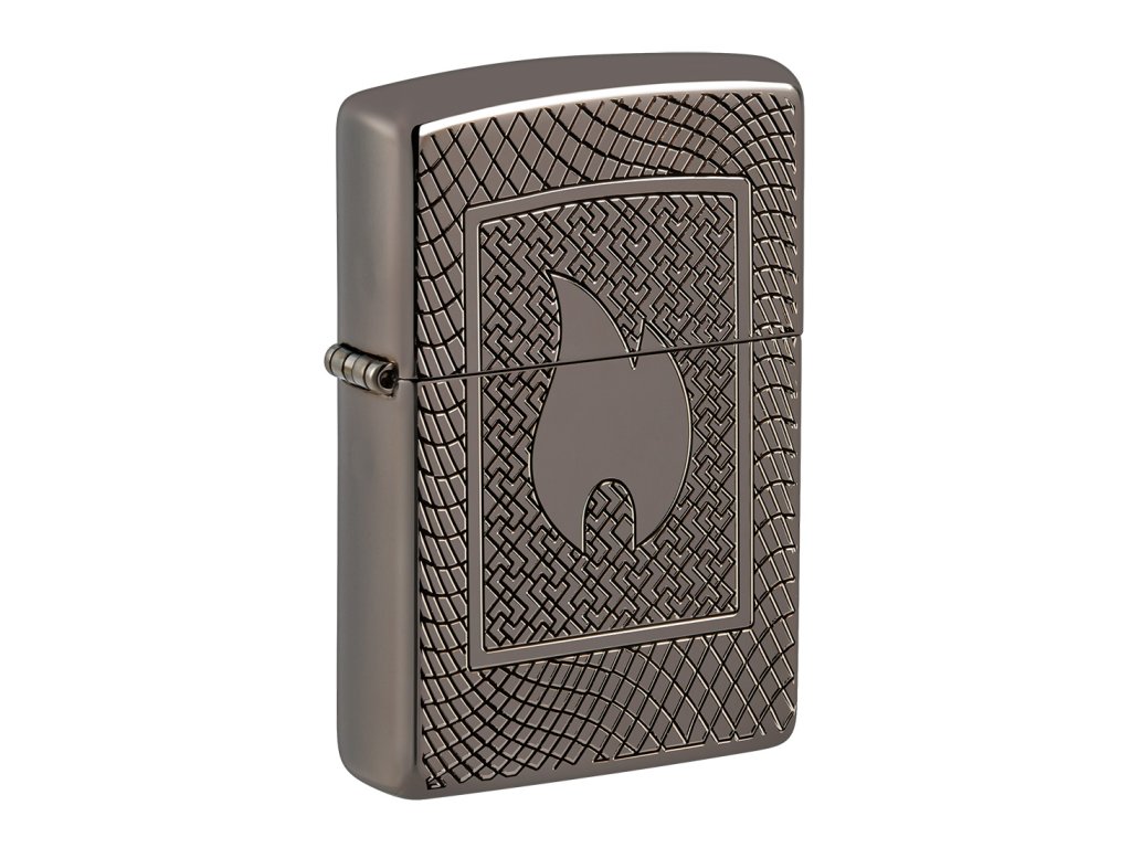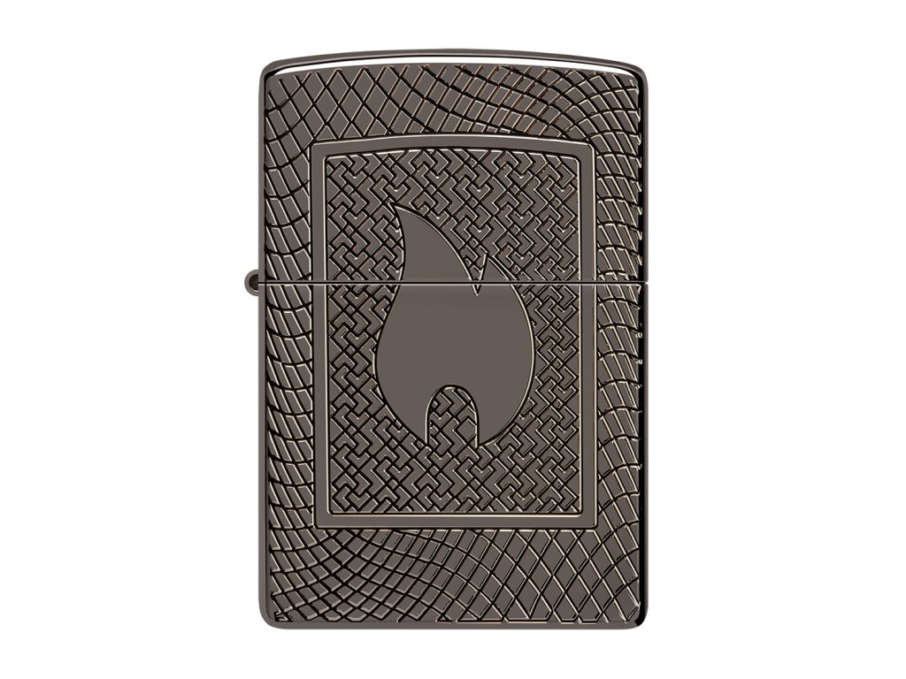 Unikátny zapaľovač Zippo Armor® High Polish Black v sebe spája elegantný dizajn a odolnosť, čo z neho robí nielen funkčný nástroj, ale aj luxusný doplnok. Tento model je ozdobený ikonickým plameňom Zippo, ktorý je vyrytý pomocou technológie Deep Carve, čím vzniká sofistikovaný textúrovaný efekt na pozadí zložitých geometrických vzorov.