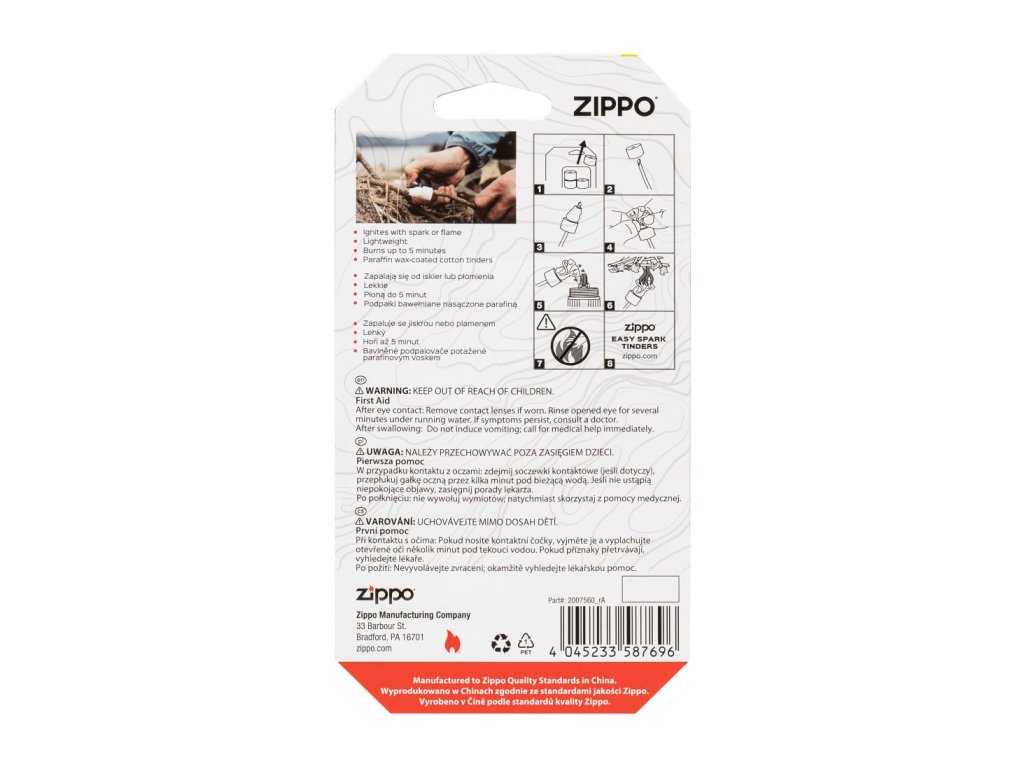 Zippo troudy sú ideálnym doplnkom pre každého, kto miluje outdoorové dobrodružstvá. Ľahké, výkonné a ľahko prenosné troudy sú vyrobené z prírodných bavlnených vlákien stlačených do kompaktných diskov. Vďaka vodeodolnej povrchovej úprave parafínovým voskom si poradia aj v náročných podmienkach, kde spoľahlivo vytvoria stabilný plameň až na 5 minút. Jedinečný dizajn s priechodným otvorom umožňuje jednoduchšiu manipuláciu a zaisťuje presnosť pri zakladaní ohňa.