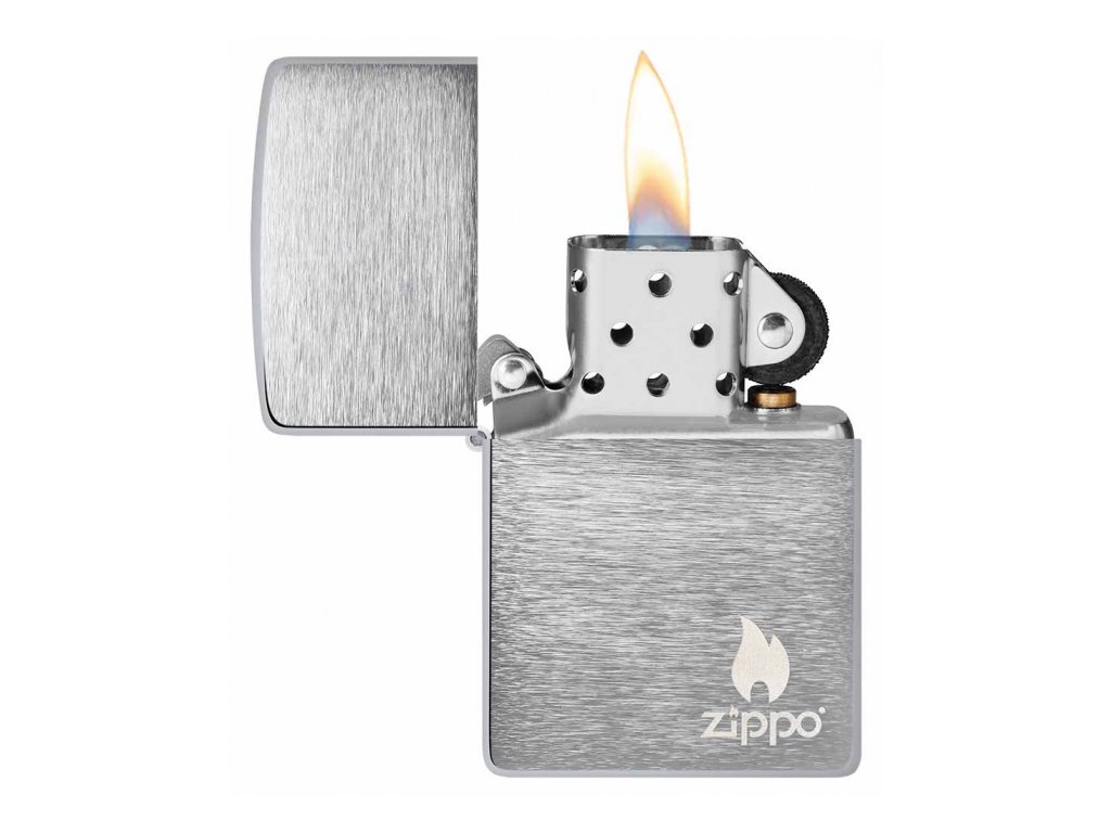 Zippo zapaľovač v tradičnom prevedení z brúseného chrómu a s malým logom Zippo v pravom dolnom rohu. Zapaľovač je dodávaný v darčekovej krabičke.
