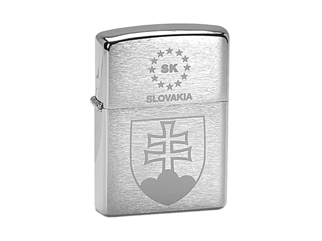 Originální Zippo zapalovač 21363 se slovenským státním znakem. Povrch z odolného broušeného chromu. Možnost gravírování na zakázku.
