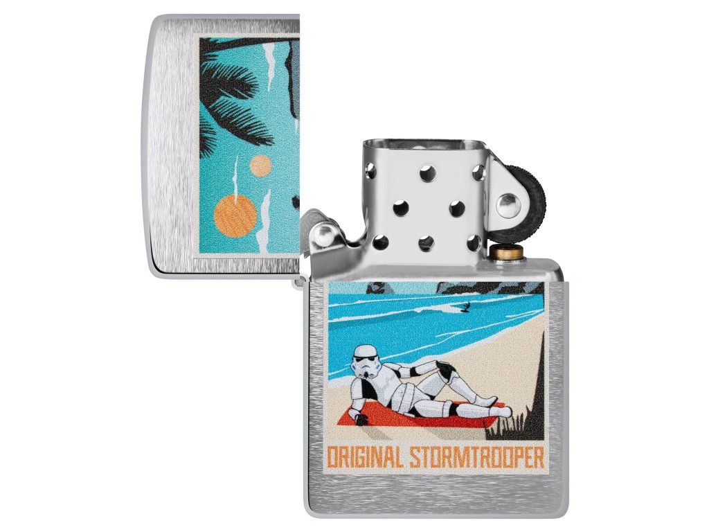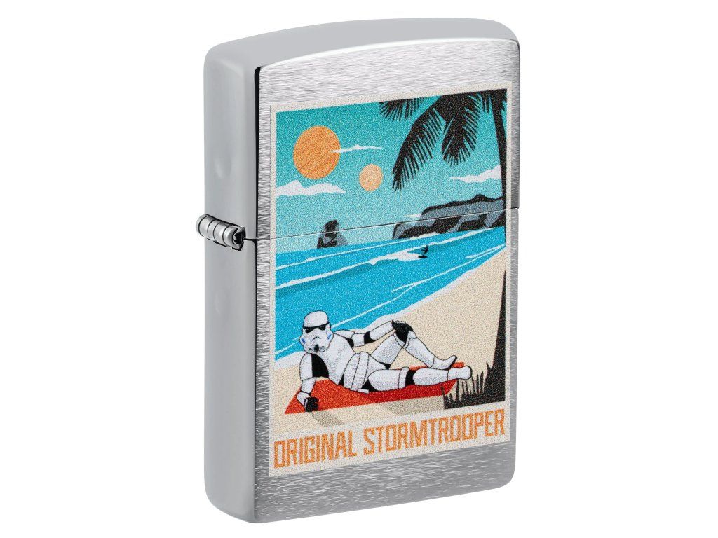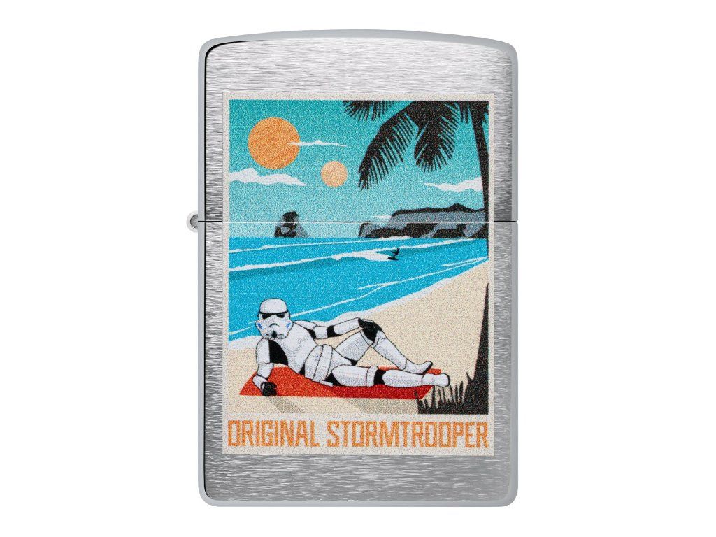 Zippo zapalovač Stormtrooper Beach spojuje legendární kvalitu značky Zippo s ikonickým motivem Stormtroopera – jedné z nejznámějších bojových jednotek galaxie. Na klasickém zapalovači s povrchem Brushed Chrome je pomocí technologie Color Image zobrazen Stormtrooper, který si dopřává chvíle odpočinku na pláži. Tento kontrast mezi přísným vojákem a pohodovou atmosférou vytváří originální a zábavný design.