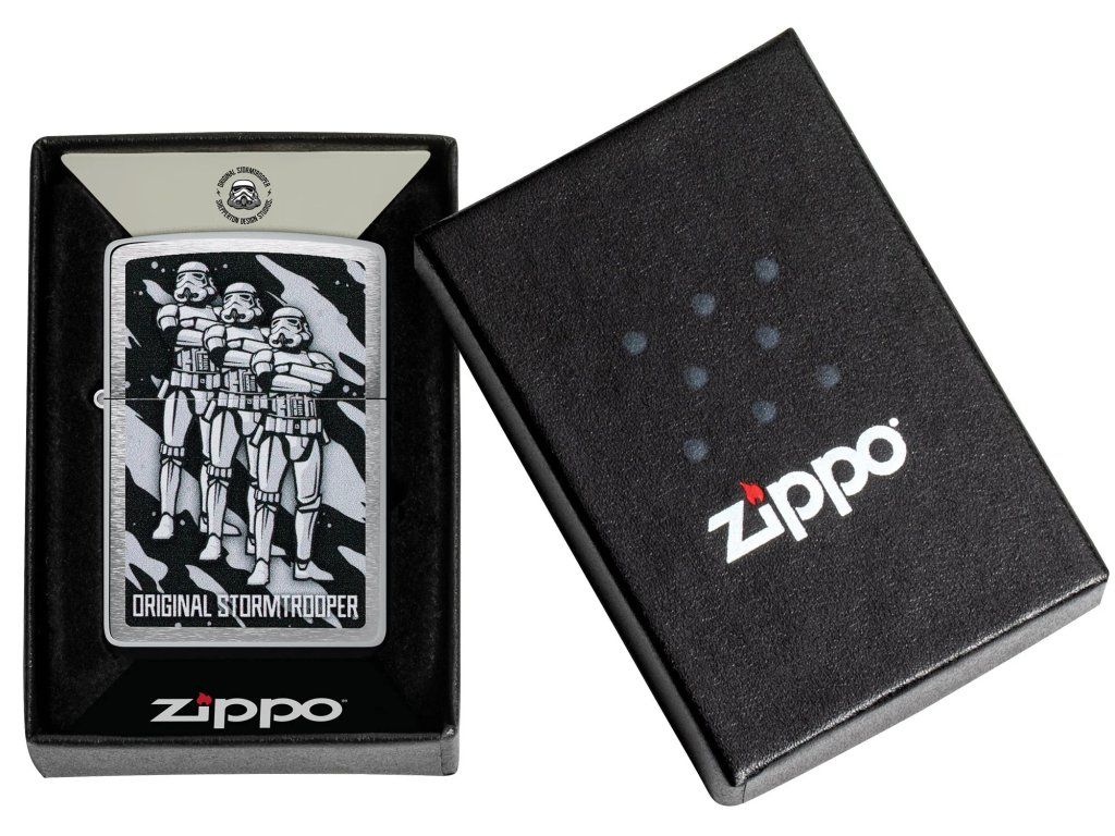 Zippo zapalovač Original Stormtrooper Squad Design přináší ikonický motiv jedné z nejznámějších vojenských jednotek filmové historie. Na klasickém zapalovači s povrchem Brushed Chrome je pomocí technologie Color Image zobrazen celý oddíl Stormtrooperů připravených splnit své rozkazy.