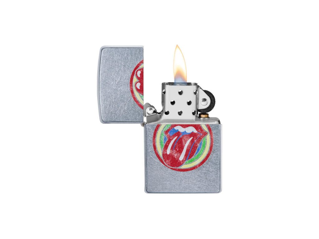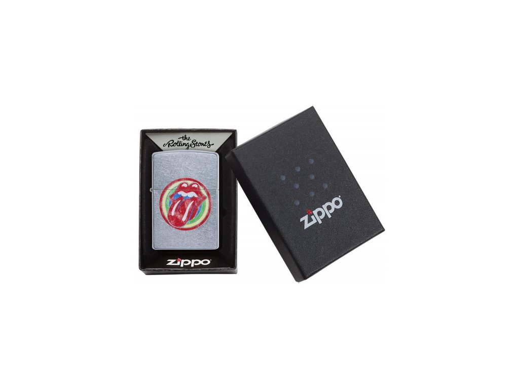 Benzínový zapalovač Zippo s logem rockové legendy The Rolling Stones. Zapalovač je dodáván v dárkové krabičce.