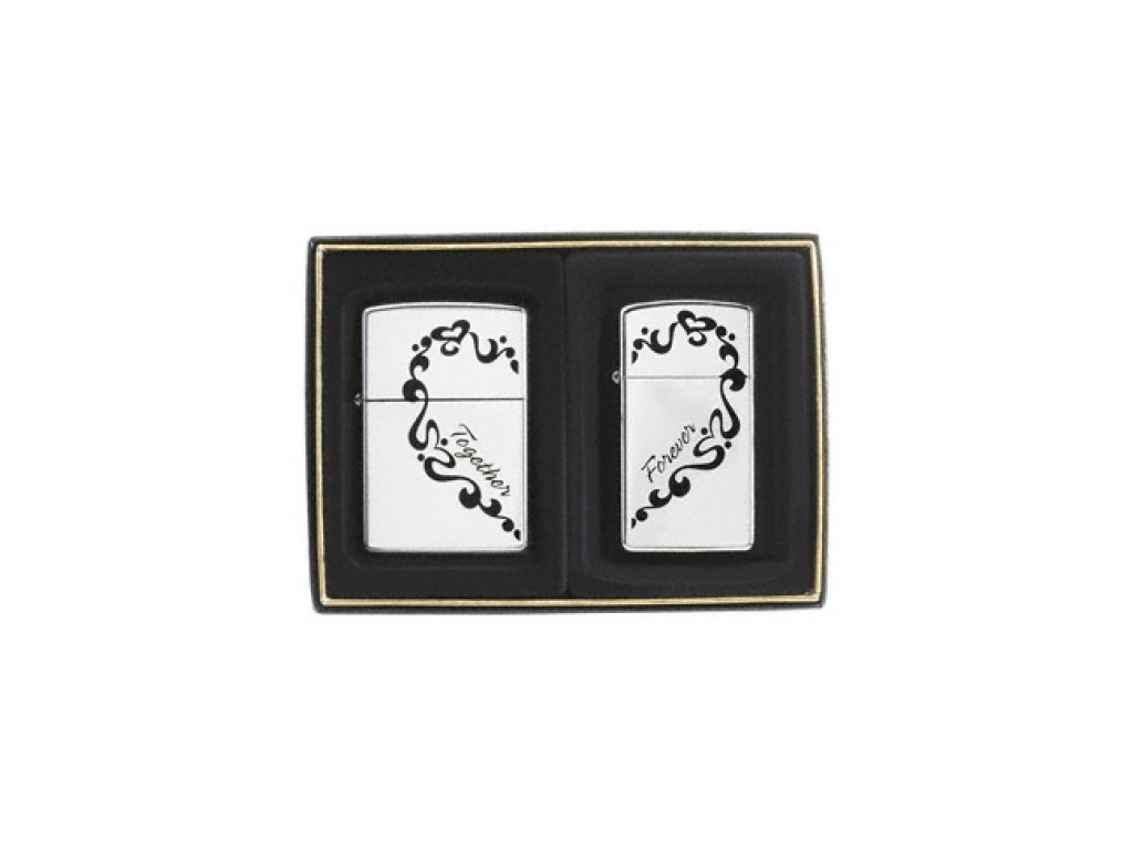 Set Zippo zapalovačů pro zamilované. Obsahuje dva kusy Zippo s potiskem na přední straně. Zapalovače jsou dodávány v dárkové krabičce.