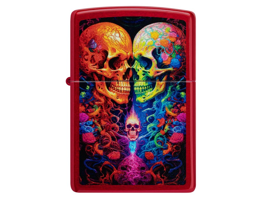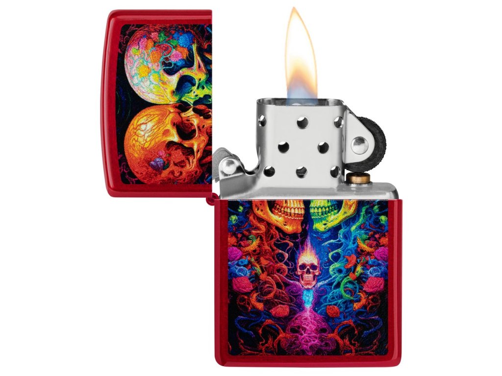 Model Zippo Skulls Design 7709 představuje odvážný vizuální kontrast mezi temnou symbolikou lebek a explozí barev, která čerpá z psychedelického a abstraktního umění. Oproti tradičním motivům působí tento zapalovač moderně, expresivně a výrazně emotivně.